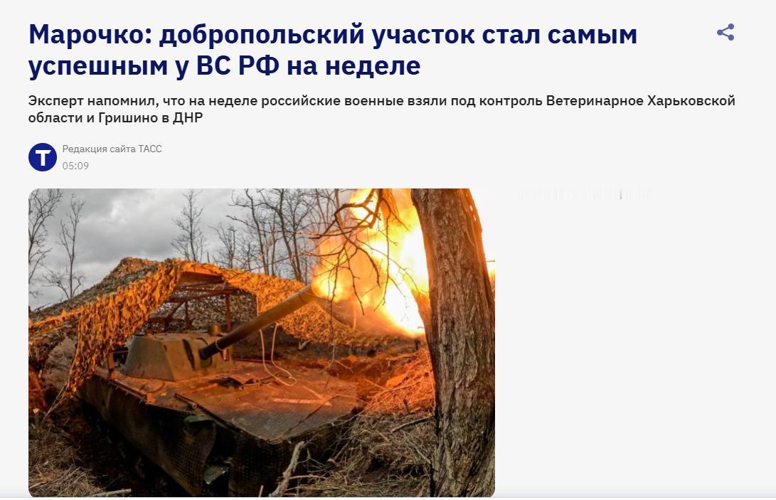 根据俄罗斯媒体4月27日报道,军事专家安德烈·马罗奇科基于俄罗斯国防部数据分析指出,过去一周,俄军在顿涅茨克人民共和国和哈尔科夫州方向取得显著进展。其中,“中央”集团军部队在多布罗波列(杜布罗波列)地区表现最为突出,成功扩大了控制区。此外,俄军还相继控制了哈尔科夫州的兽医镇和顿涅茨克人民共和国的格里希诺镇。马罗奇科补充称,过去一周内,乌克兰武装部队及外国雇佣兵在该作战区域的损失总计超过8200人,其中绝大部分由“中央”集团军造成。