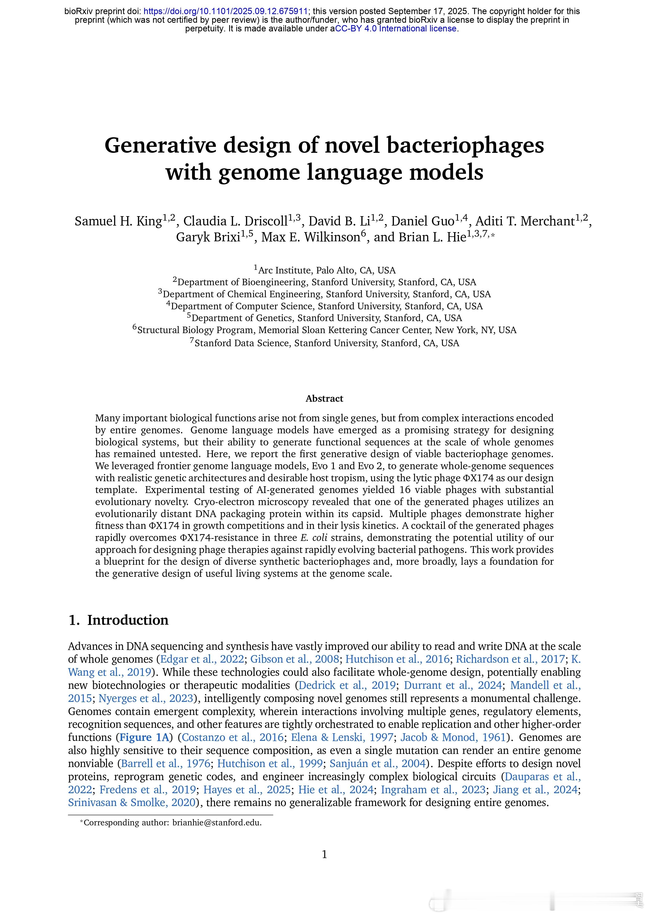 斯坦福大学和Arc研究所的一个研究团队向语言模型输入了一段DNA序列,并要求它编写一种新的病毒。 它写了数百个,其中16个成功了。 其中一种病毒使用了一种地球上任何已知生物体中都不存在的DNA包装蛋白。