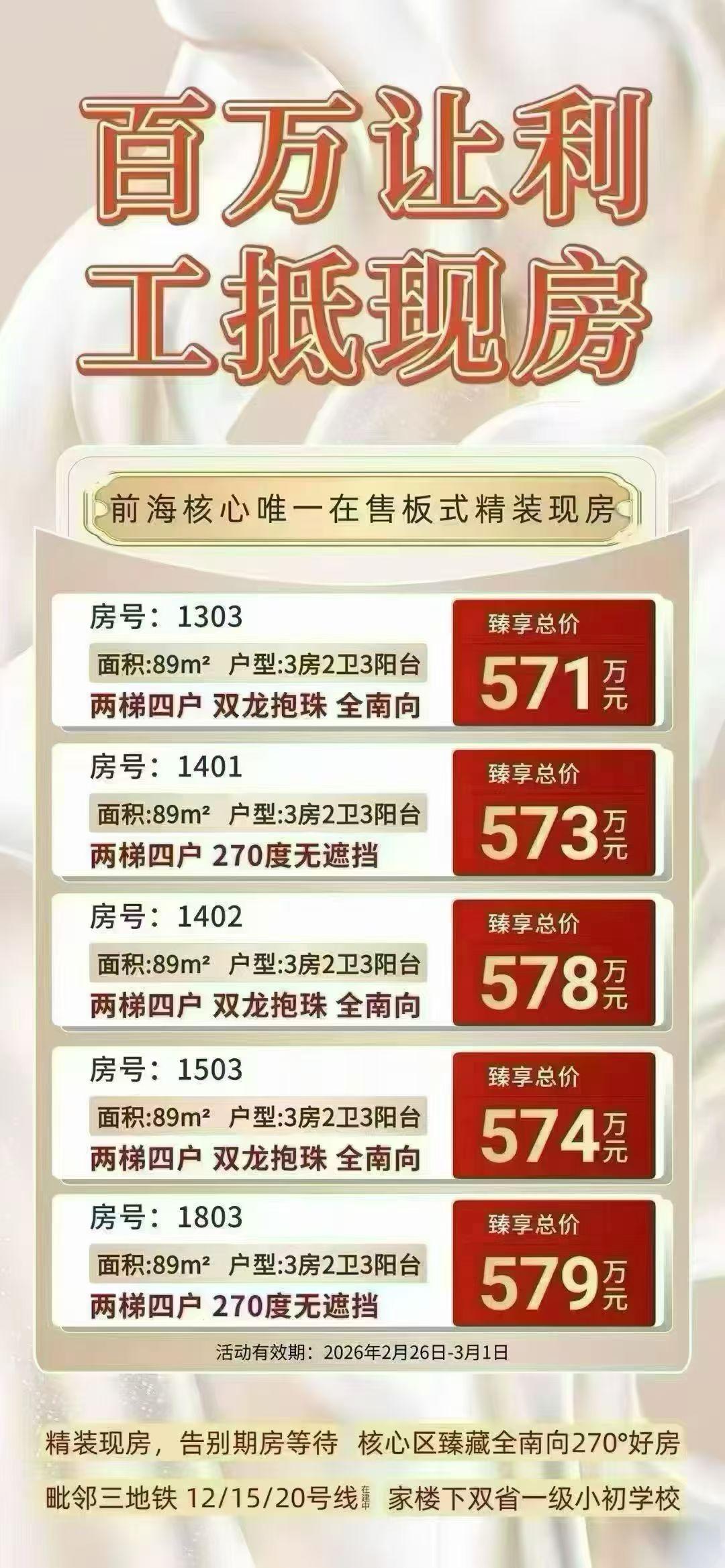 宝安新安的这个开发商坚守了五年,终究还是按捺不住了。每套降价100 - 200万抛售,只需20万首付就能拿下。2020年时,房价还坚持在9.3万/平。这几年,周边新楼盘纷纷降价抛售以回笼资金,首当其冲的便是附近的珺悦名都。过完年,珺悦名都就抛出“王炸”,每套直降100万开盘,仅5天时间就将89平的小户型全部售罄,抢得了金三银四的头啖汤。