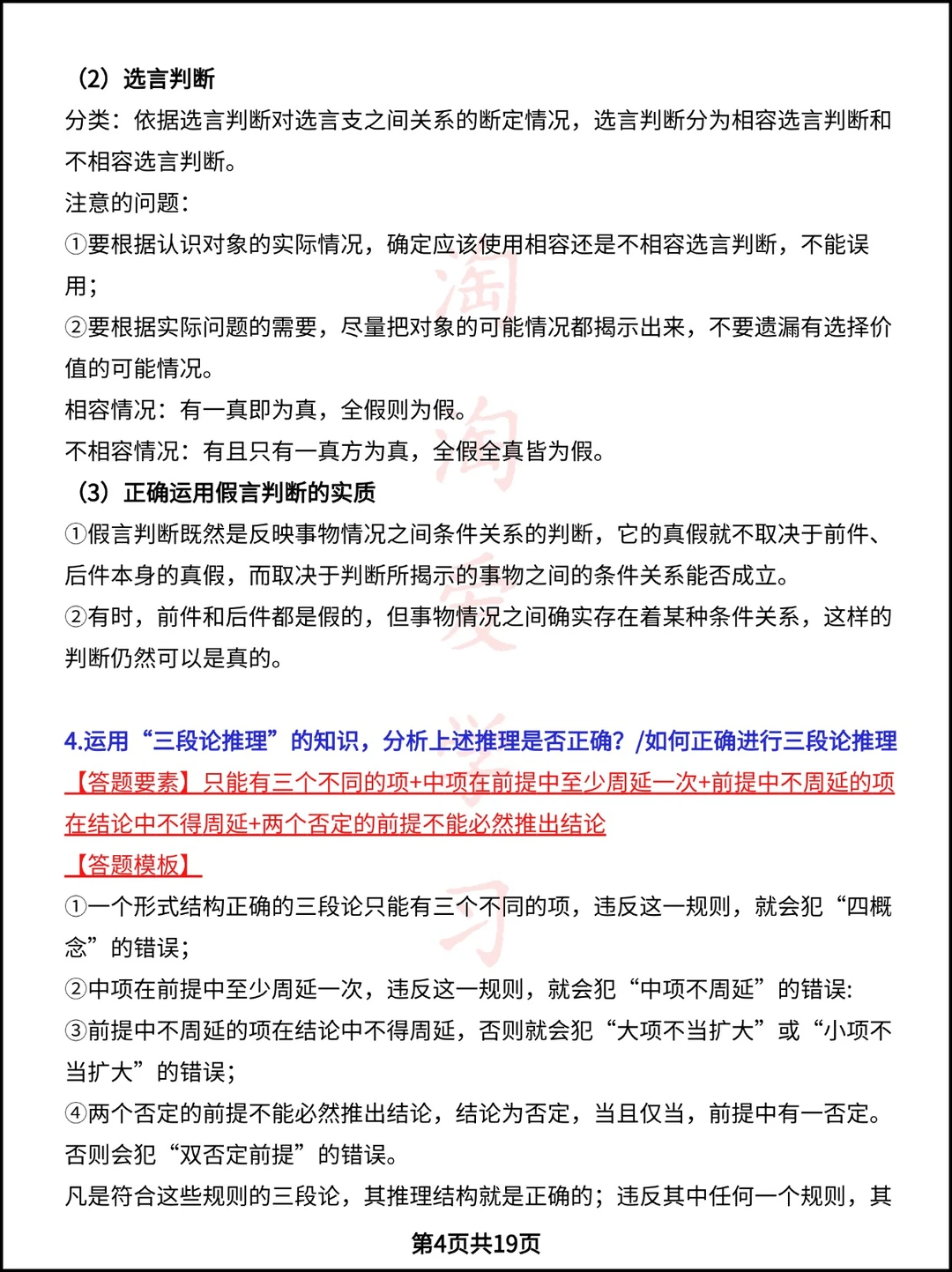 高中政治选必三《逻辑与思维》答题模板