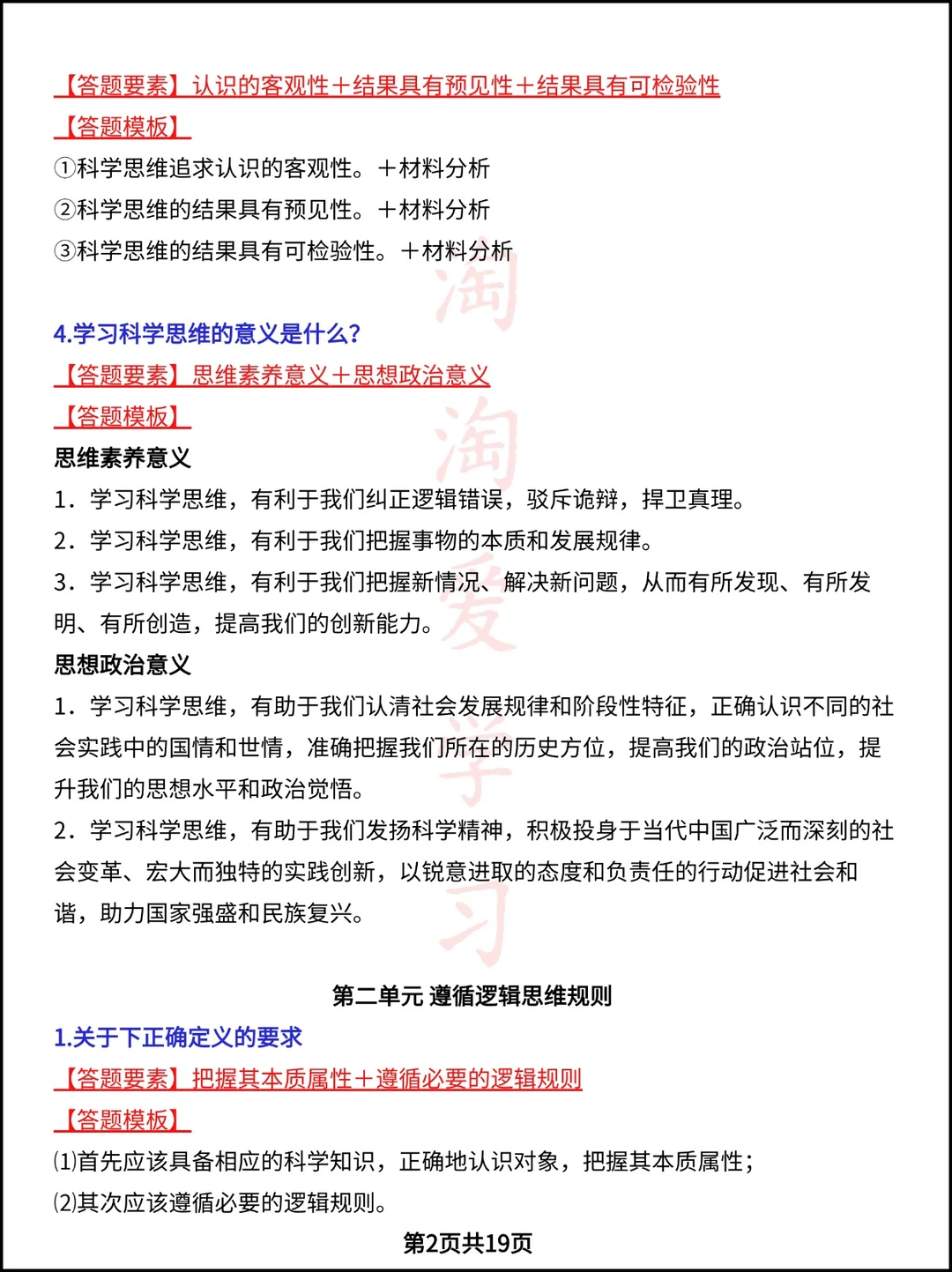 高中资料 复习资料 高中政治笔记 答题模板 政治 答题模板 高考政治 逻辑与思维 学霸笔记 高考