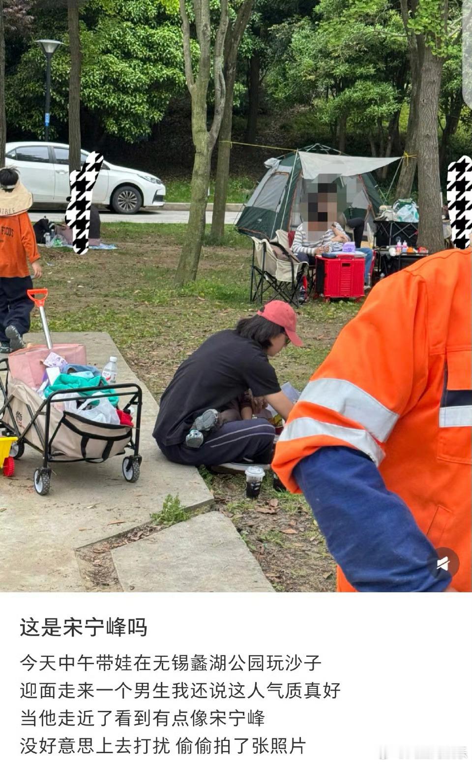 宋宁峰留长发身形消瘦宋宁峰出轨风波后带娃首露面近日,带娃被网友偶遇,这也是他在出轨风波后的首次现身。照片中的宋宁峰戴着红色帽子,还留起了长发,身形略显消瘦,他抱着孩子坐在石头上,神情平静,全程专心陪伴孩子。