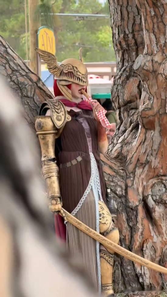 其中女武神玛莲妮亚演员在零碎的休息时间吃饭补充能量的画面也被拍到了,全妆进食小口慢嚼,还怪可爱的。最后似乎也发现了镜头,反应乖巧。