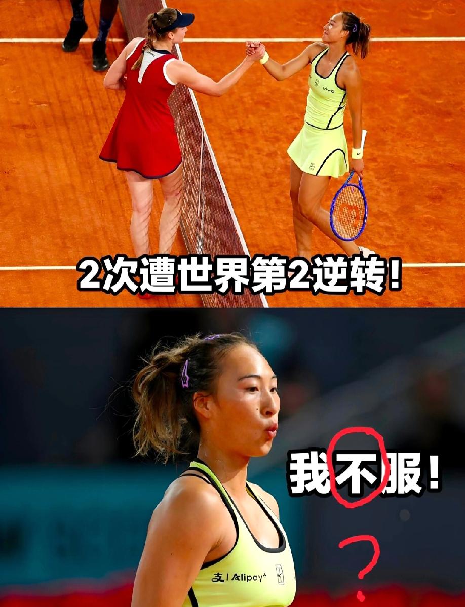 今天凌晨郑钦文1:2被莱巴金娜逆转,有网友第一时间做了下面这么一张图片,并配上文案,说郑钦文表示“不服”。