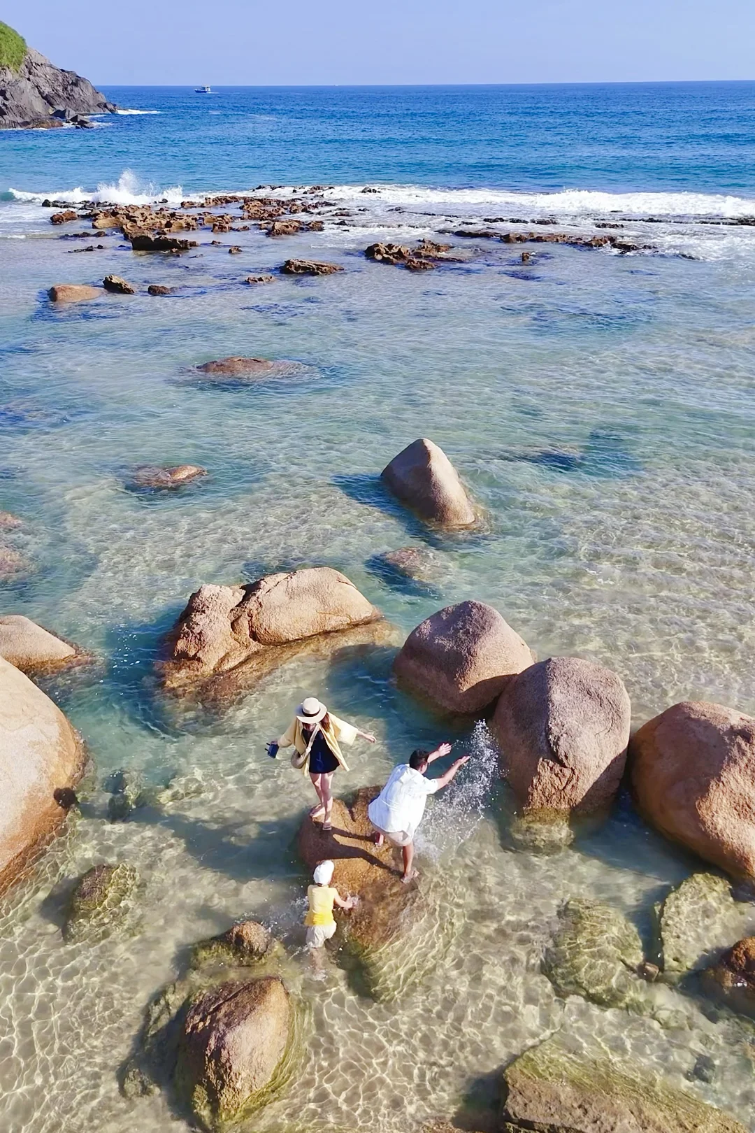 虎岭浅滩玻璃海适合玩水赶海,还有猴岛的猴子能喂,尖岭能看落日。