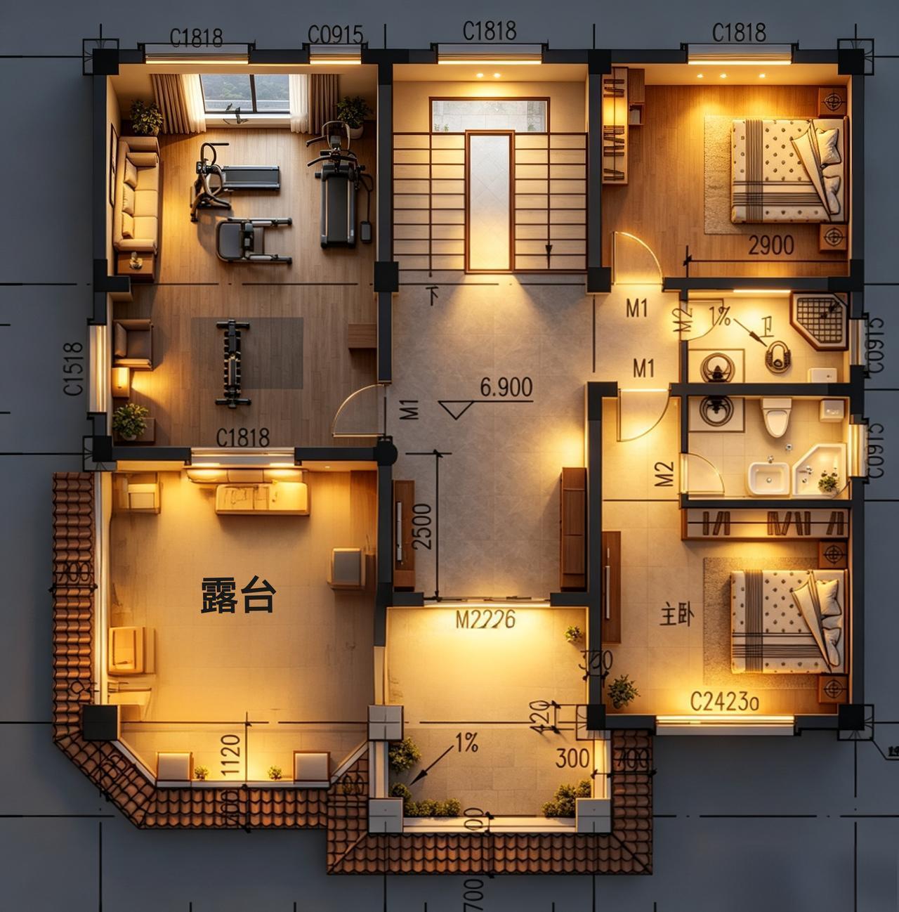 这次终于做了一套比较正常的户型,业主夫妇和两个小孩四口人居住。套内117平,四房