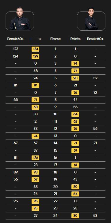 塞尔比陆续打进3个红球,但每次都只能拿1分,无法连接彩球。而吴宜泽解球不到、白球摔袋等状况频出,不断送分。据字幕,本局竟然一共送出18分。