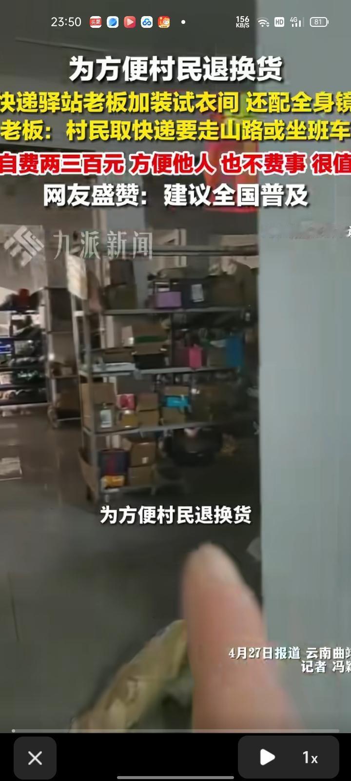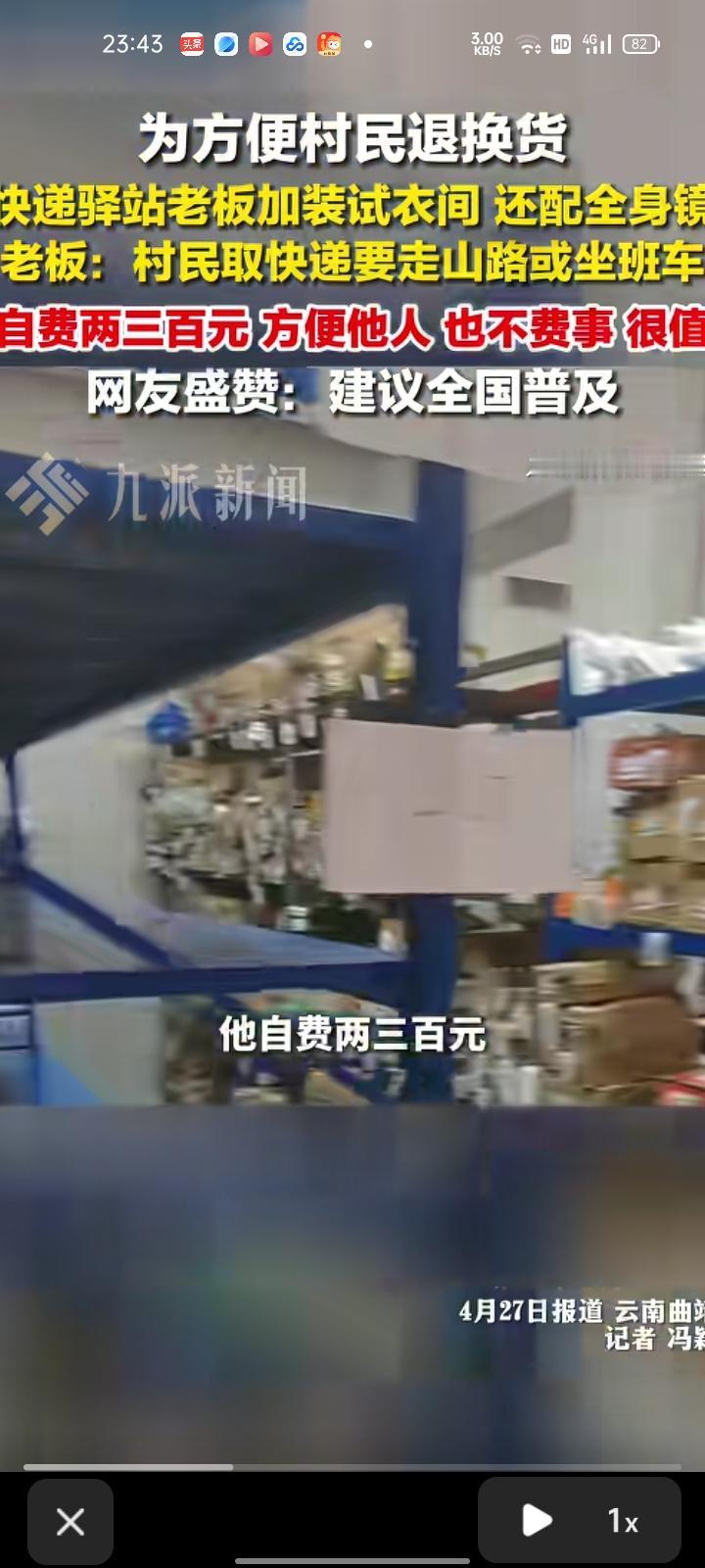 4月27日,云南曲靖。为方便村民退换货,快递驿站老板自费两三百元给驿站加装是一件,还配全身镜和晾衣架。