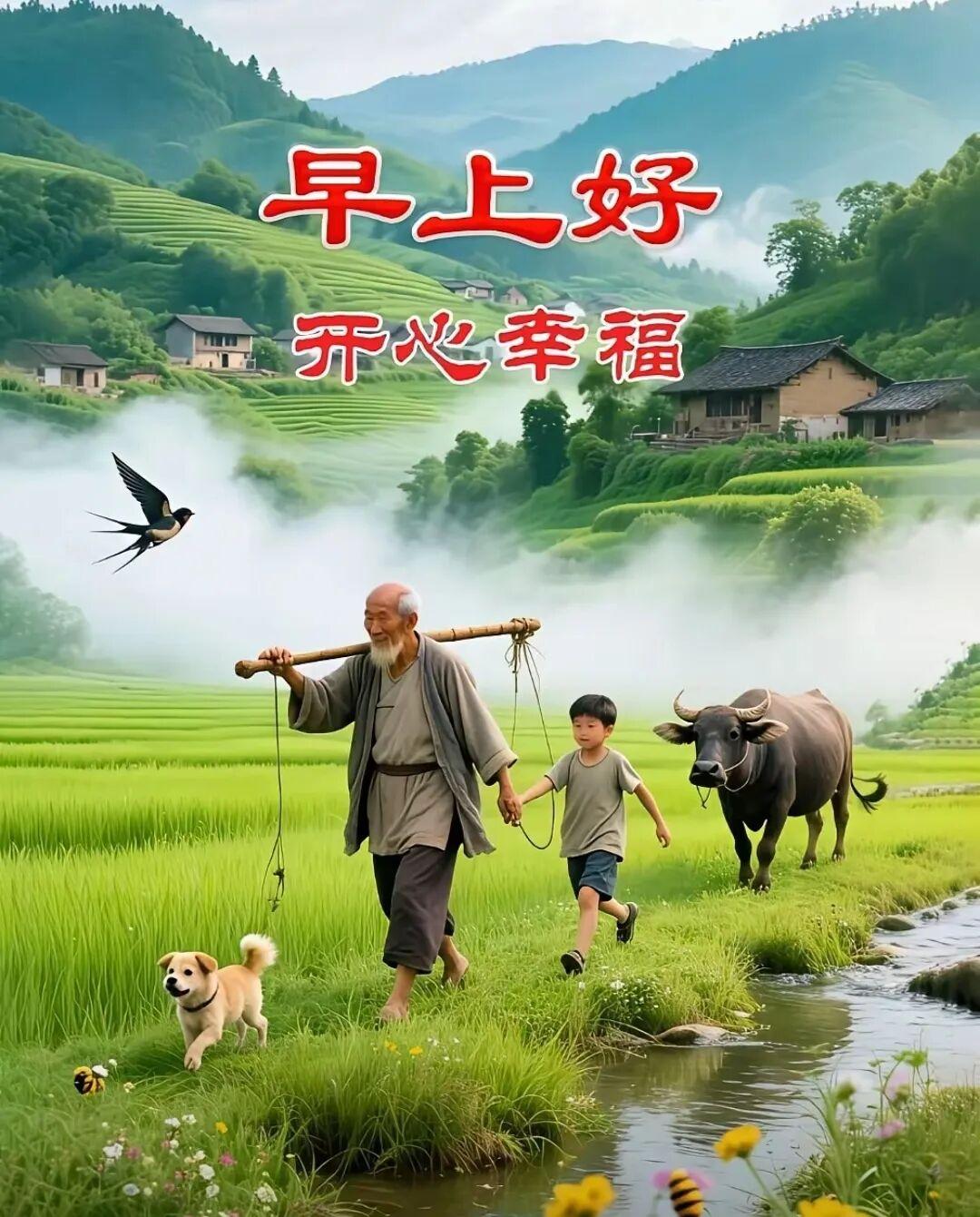 春日暖阳美如金,心情舒畅人开心;新的一天事事好,风调雨顺顺人意;忘掉烦忧