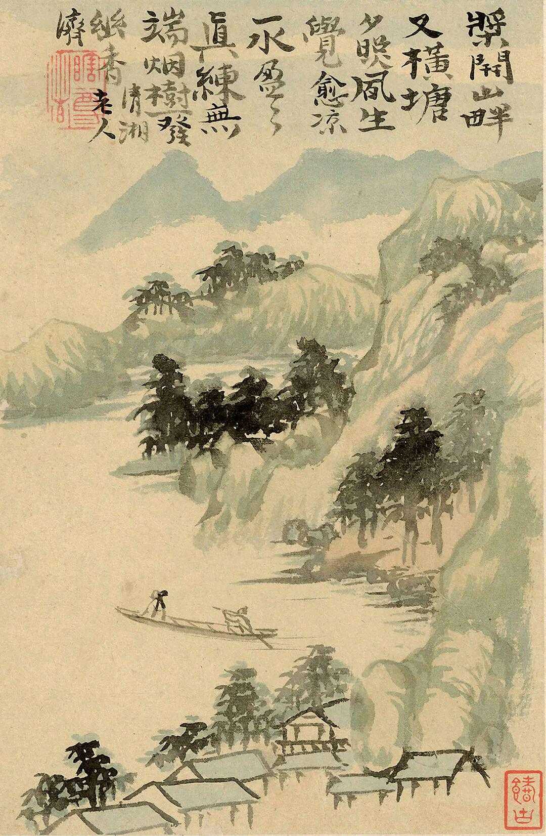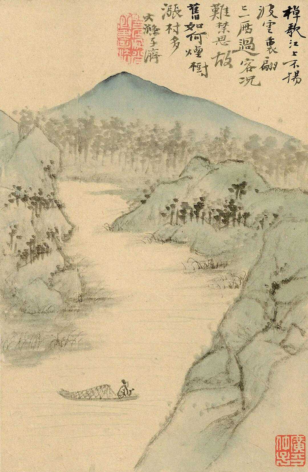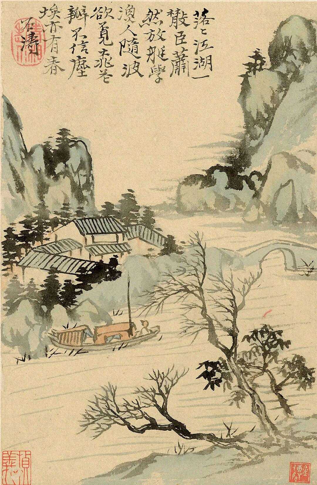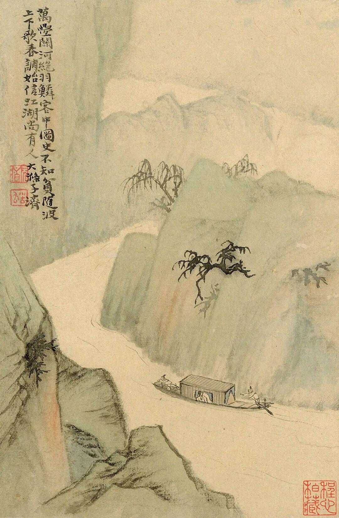 石涛《江行画册》,纸本浅绛-32.2x22.4厘米。此册是石涛五十一岁自北京沿运