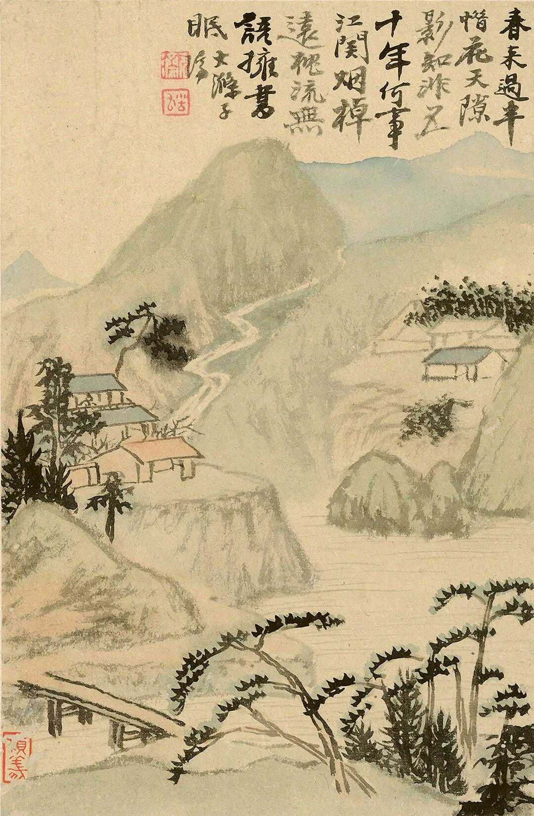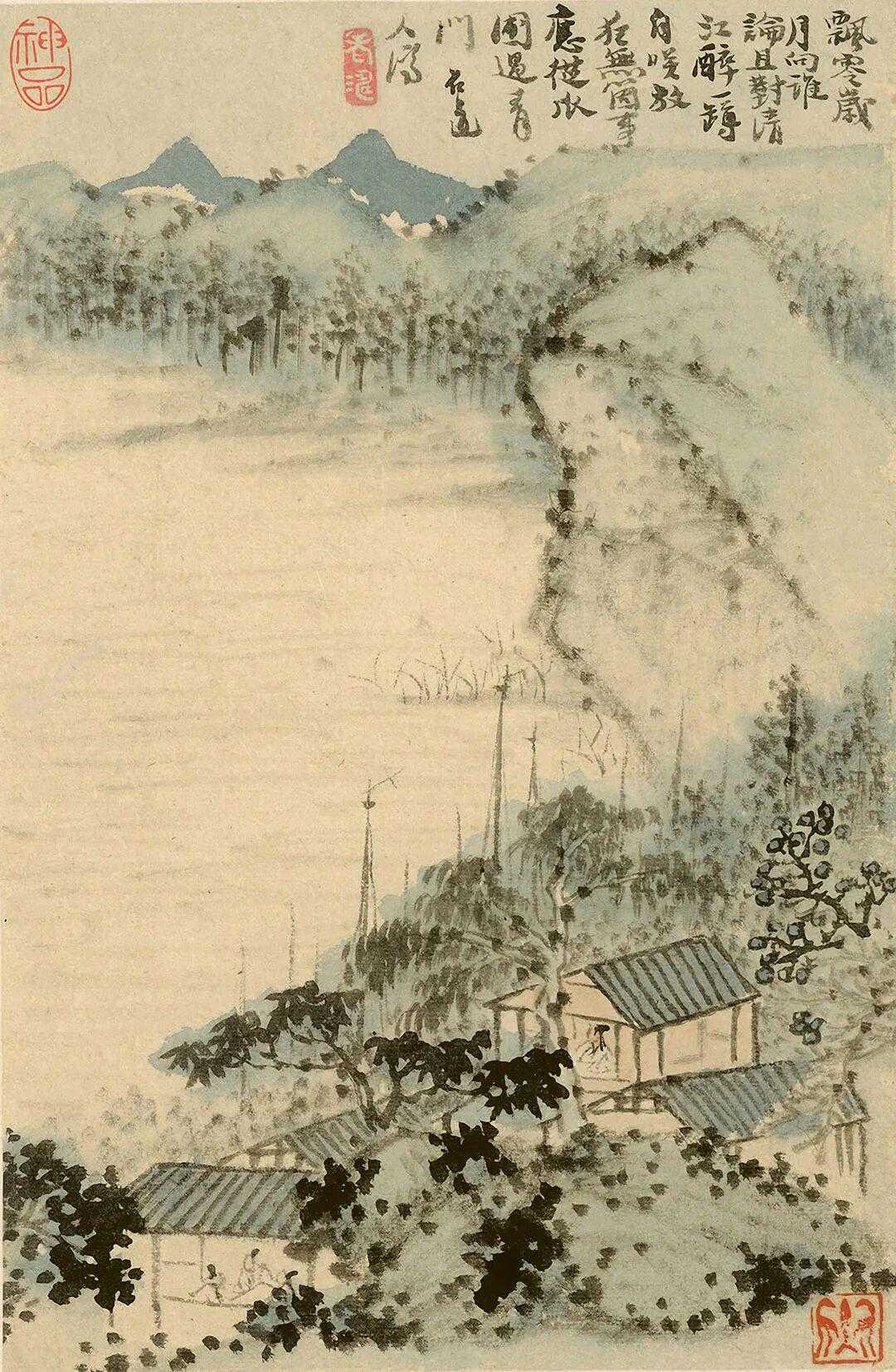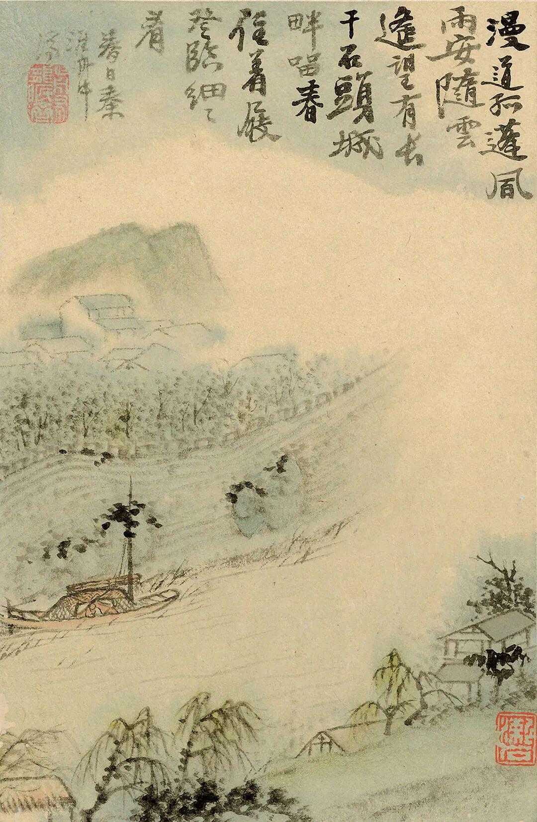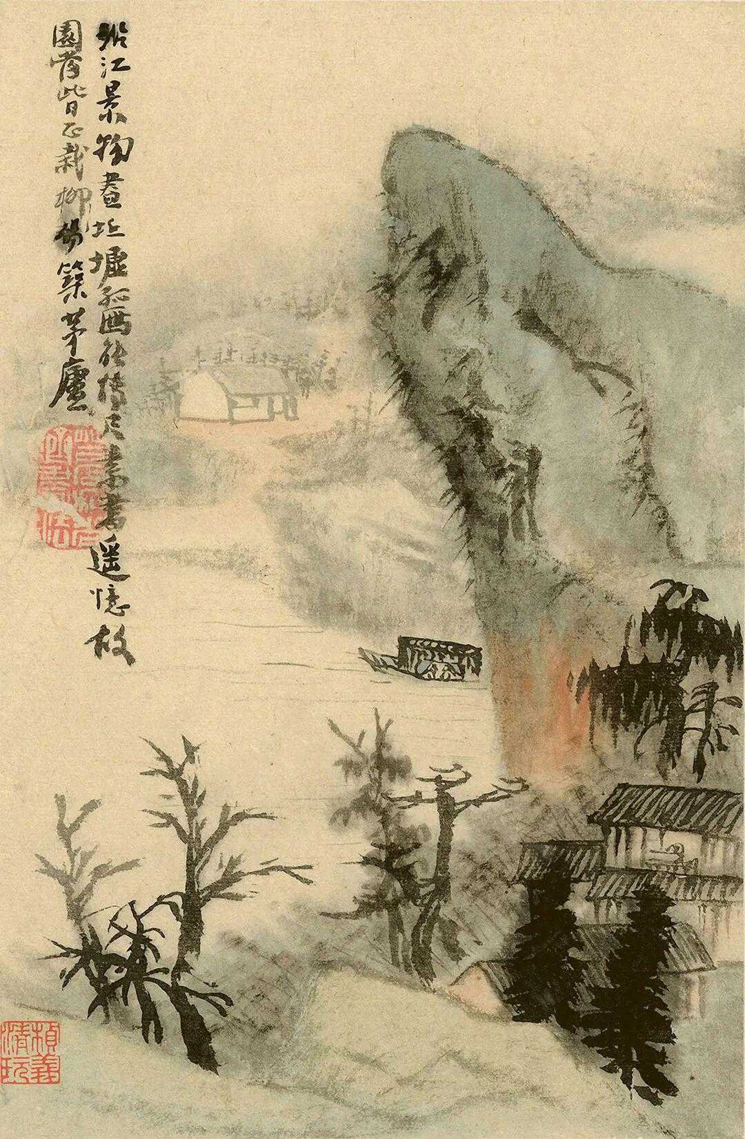 石涛《江行画册》,纸本浅绛-32.2x22.4厘米。此册是石涛五十一岁自北京沿运