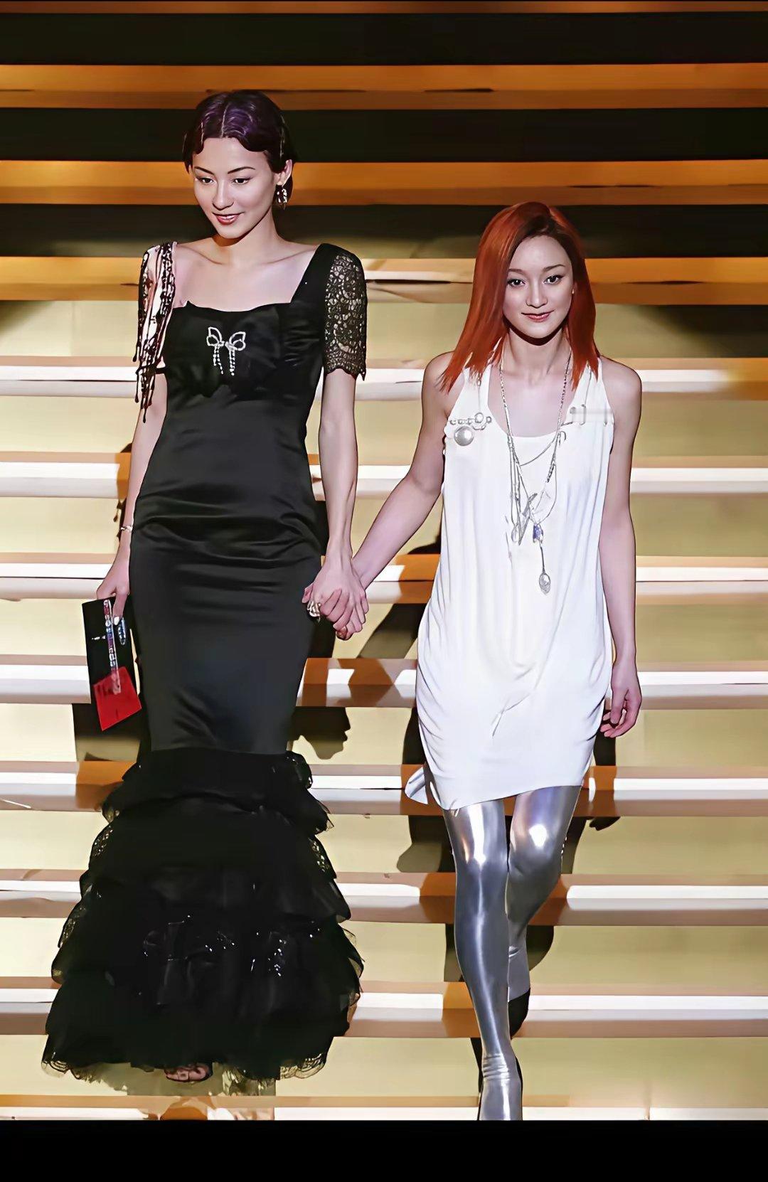 她们以前好保守啊张柏芝穿超长的裙子周迅可能嫌裙子短又穿个银裤子她们怕漏现在的新生
