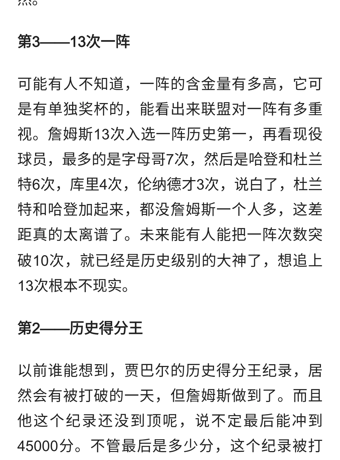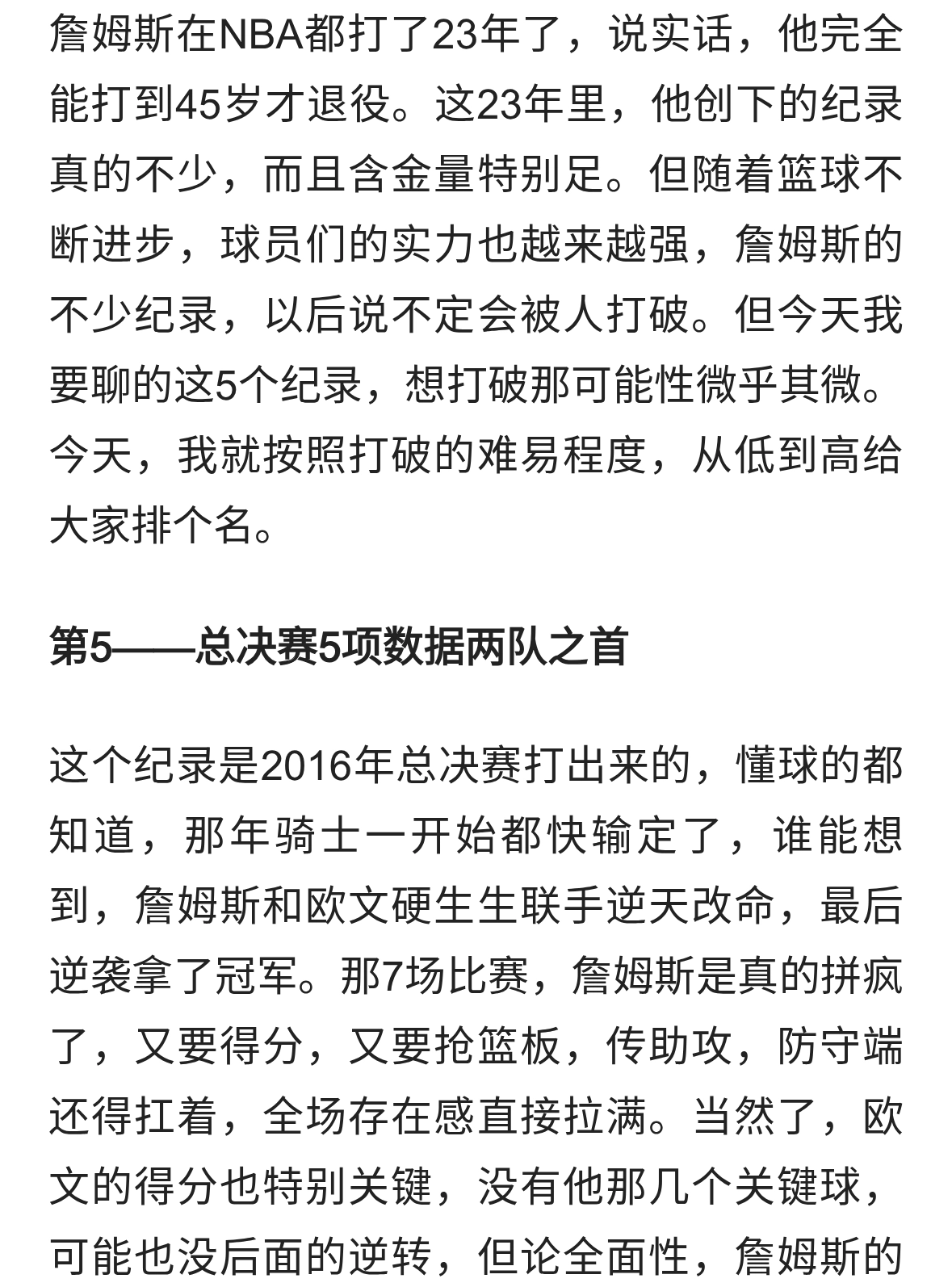 詹姆斯最难打破5大神迹,历史得分王仅排第2 榜首只能被仰视