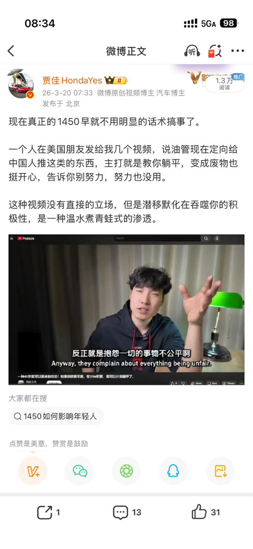 三月发的一个观察,居然是真的。躺平是躺不了一点的,中国人讲究的是斗争到底。你觉得