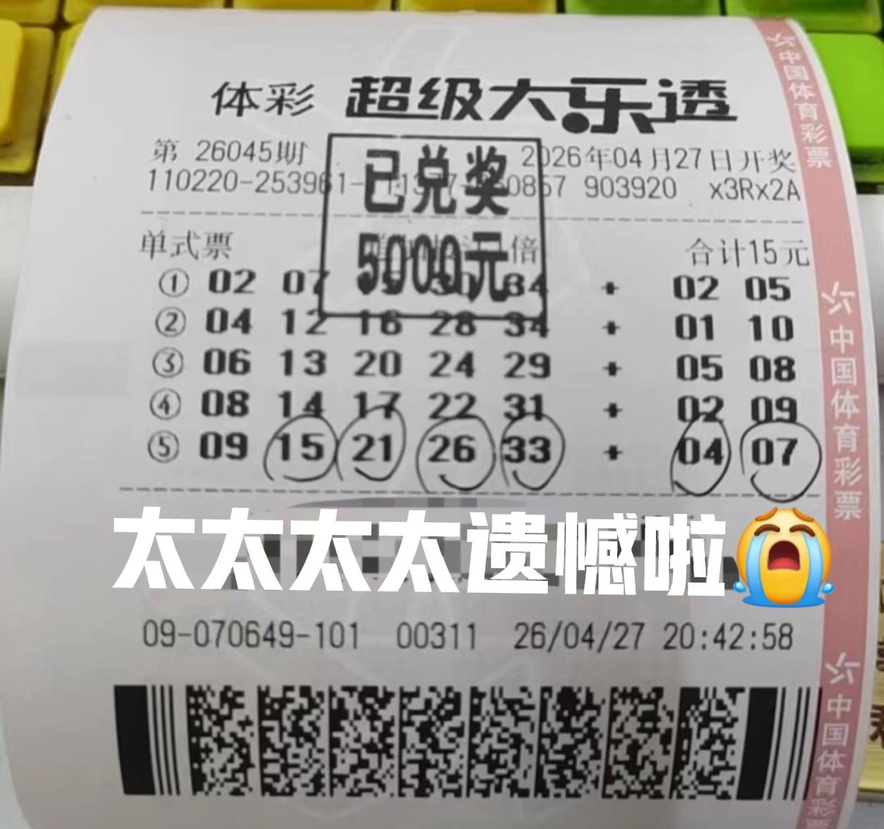 简直太遗憾了!我的老天奶,仅仅只差一个号码,几百万变几千元,主任太没意思了,多我一个大奖得主也不多啊!
