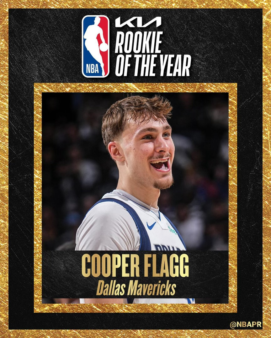 弗拉格当选最佳新秀🔥19岁封神!弗拉格当选NBA年度最佳新秀独行侠状元郎直接炸场💥 实至名归的天才少年!🏆2025-26赛季NBA最佳新秀——库珀·弗拉格荣获威尔特·张伯伦奖杯✨ 独行侠队史第三位最佳新秀(前两位:基德、东契奇)📊赛季炸裂数据(70场)场均21.0分+6.7篮板+4.5助攻+1.2抢断五项数据全进新秀前五✅ 填满数据栏的全能怪物🌟历史级纪录刷屏▪️历史第二年轻最佳新秀(19岁),仅次于詹皇▪️19岁103天砍51分,NBA最年轻50+先生▪️新秀赛季四项数据领跑全队,比肩乔丹(历史仅两人)▪️单赛季4次40+,历史新秀第一🗳️险胜夺冠