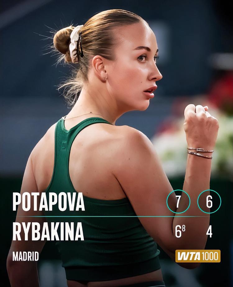 言归正传、2026马德里站,因凯斯赛前身体不适退赛、波塔波娃作为资格赛幸运落者递补入选。没想到入选的波塔波娃火力全开,上一轮逆转前法网亚军奥斯塔彭科,这一轮又零封新科澳网冠军莱巴金娜,把幸运两个字发挥到极致!!1/4将对阵伤愈复出的前世一卡普利斯科娃,大家觉得波塔波娃有机会晋级半决赛吗?波塔波娃