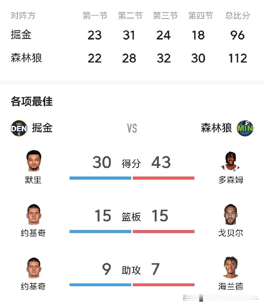 Nba掘金大比分1:3落后森林狼队,自己走的路自己承担吧,其实季后赛之前,掘金队完全可以落到第四,然后打没有东契奇和里弗斯的湖人,结果应该显而易见,应该是4:0横扫,结果他们自己挑了个第3,面对森林狼队。