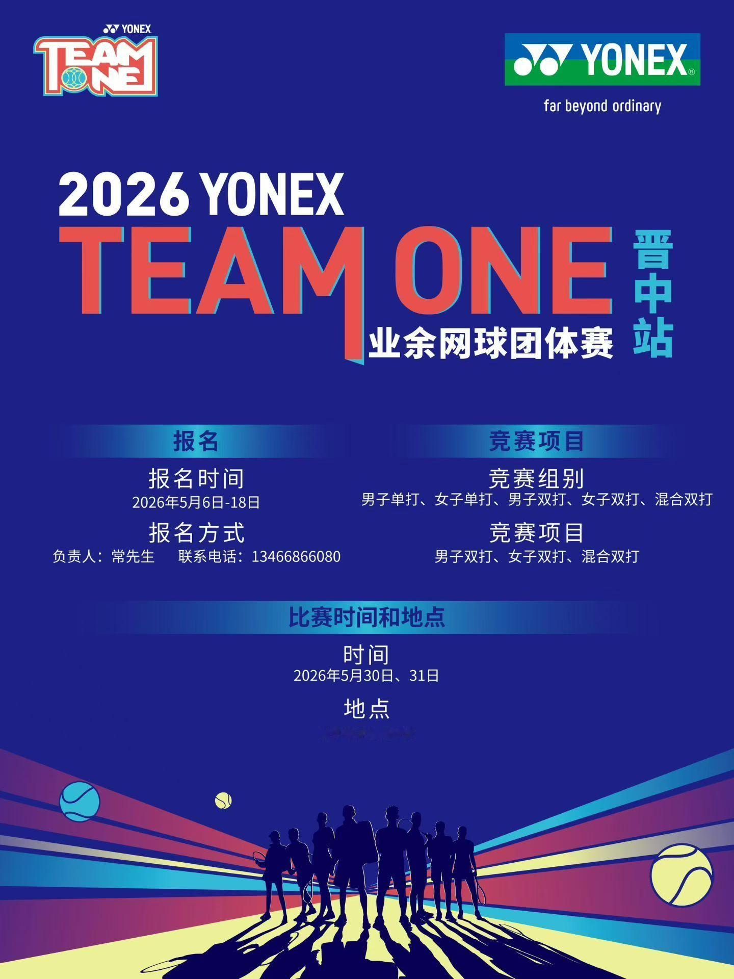 yonex与网球 2026YONEX TEAM ONE 业余网球团体赛 晋中站时间:2026年5月30日-2026年5月31日地点:晋中市乒羽网球馆