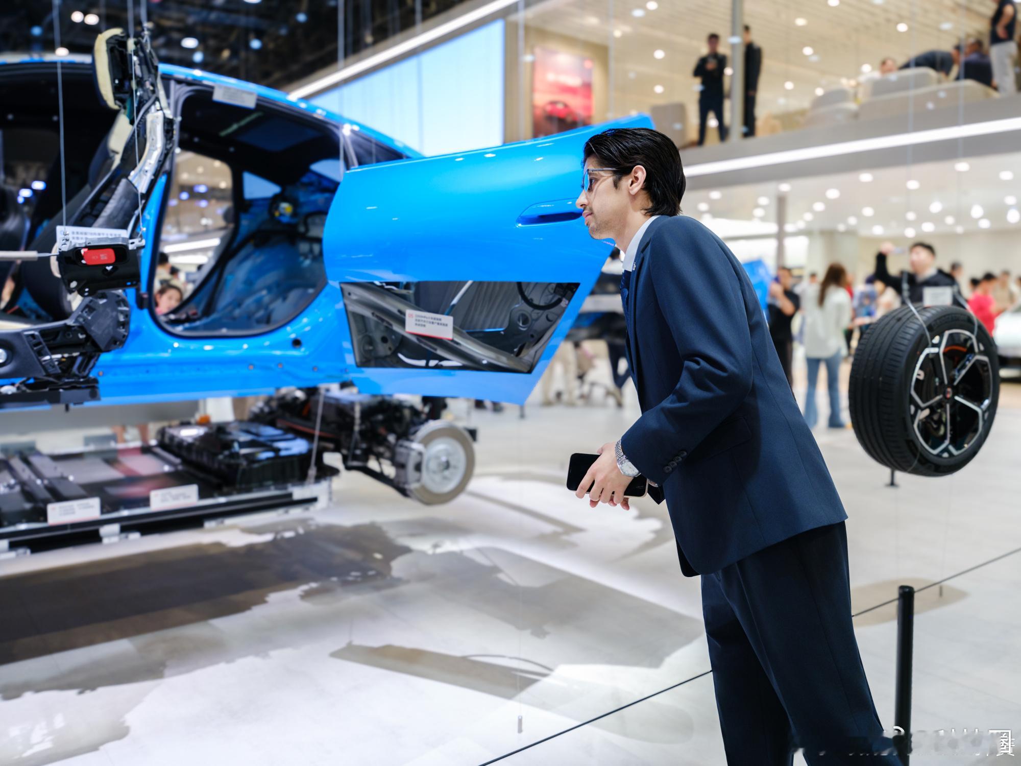 更值得关注的是展台中央那辆被完整拆解至零部件级别的新一代SU7。小米把2200MPa超强钢内嵌防滚架、1500MPa防刮底横梁、电池倒置结构与三重安全冗余门把手等工程细节全部铺开展示。这种“把工装公差摆给用户看”的透明策略,在车圈实属少见。