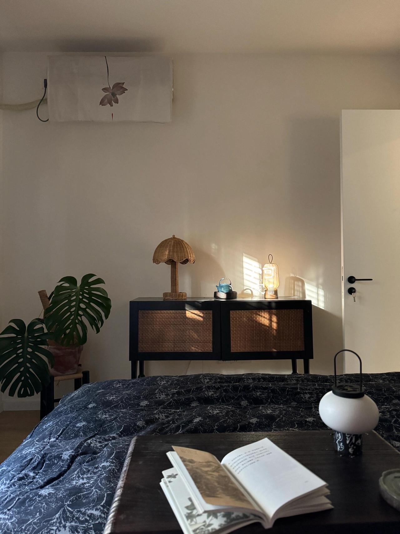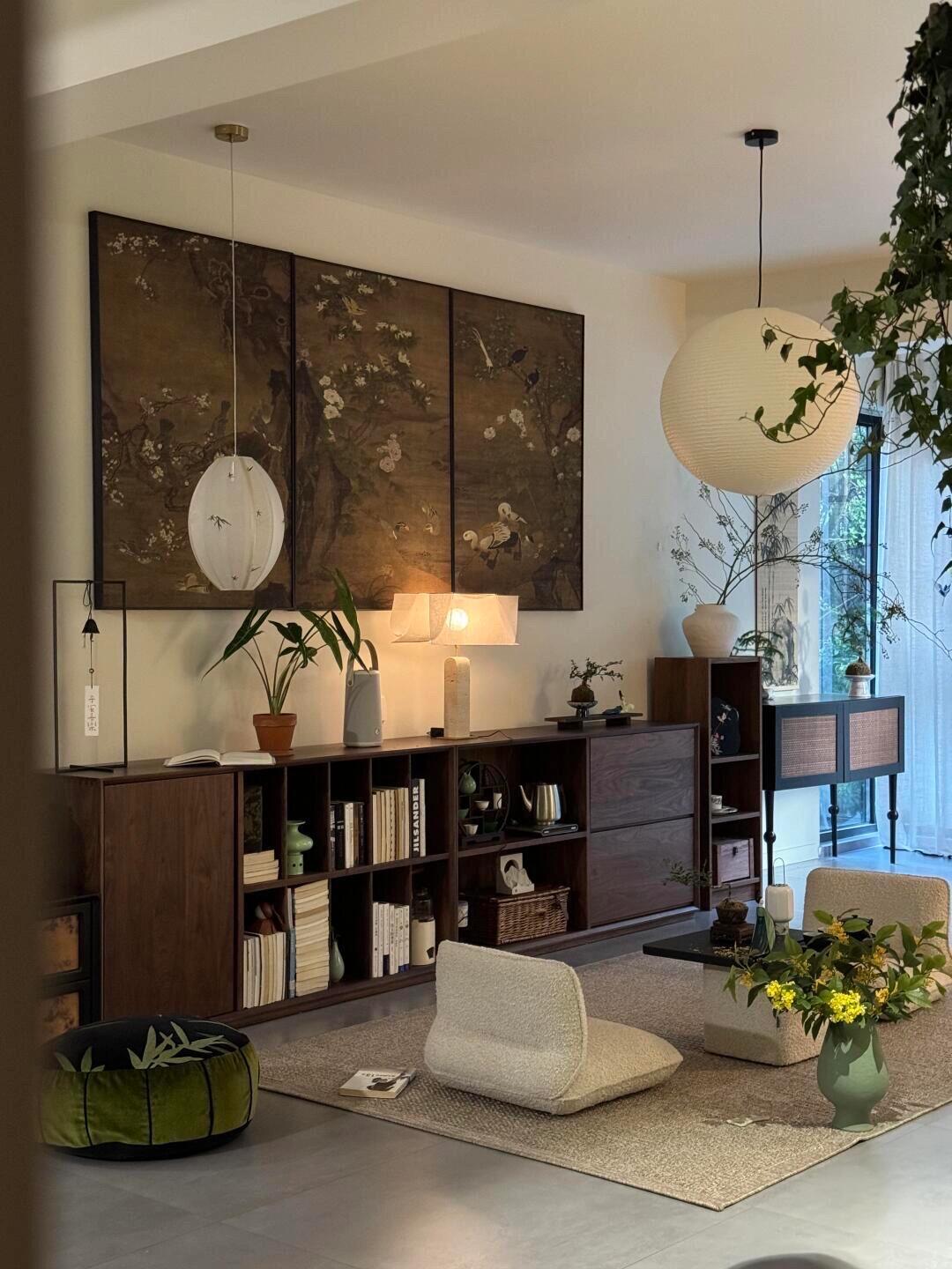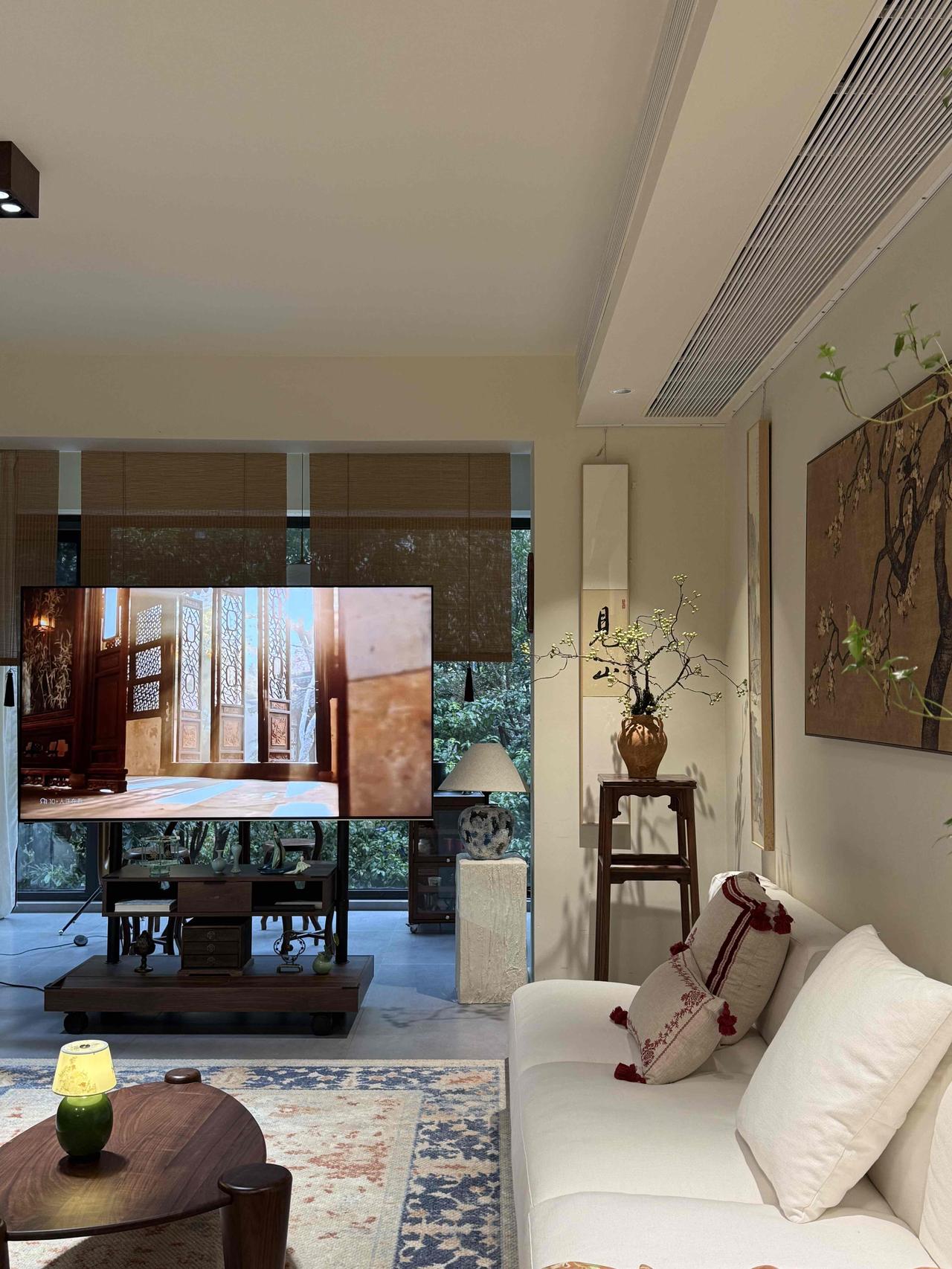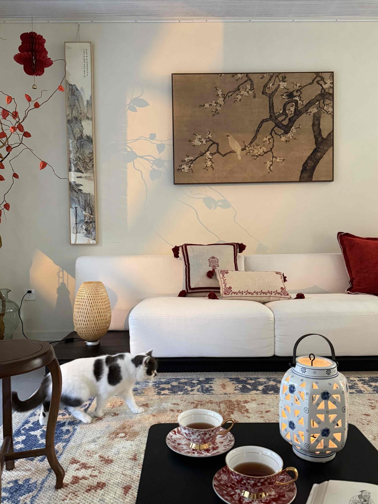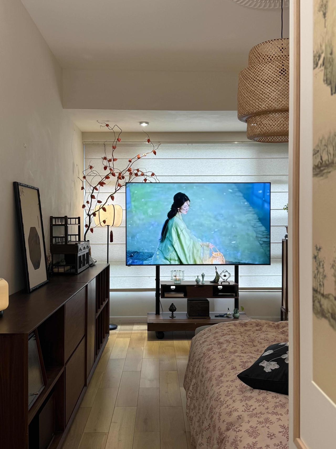 软装我慢慢淘,家具选浅胡桃木,墙面大面积的留白,配几幅中式挂画,每个朋友来都说,这不像你家,像你本人——清清爽爽,不争不抢。