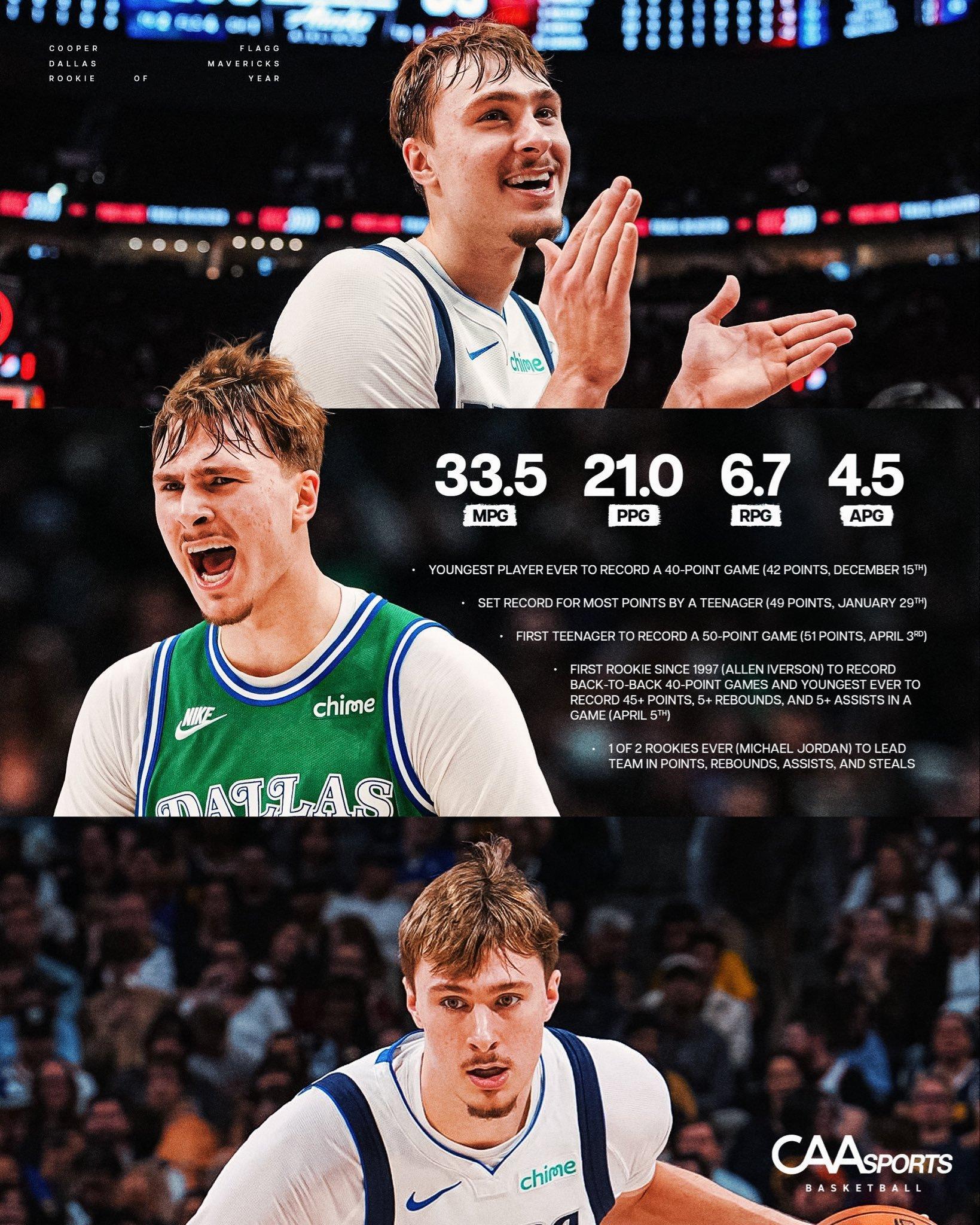 弗拉格赛季尤其是后半段,确实打出很多“作品” :最年轻的40+、最年轻的50、最年轻的45+5+5、连续两场40+、第二个得分篮板助攻抢断领先全队的新秀。
