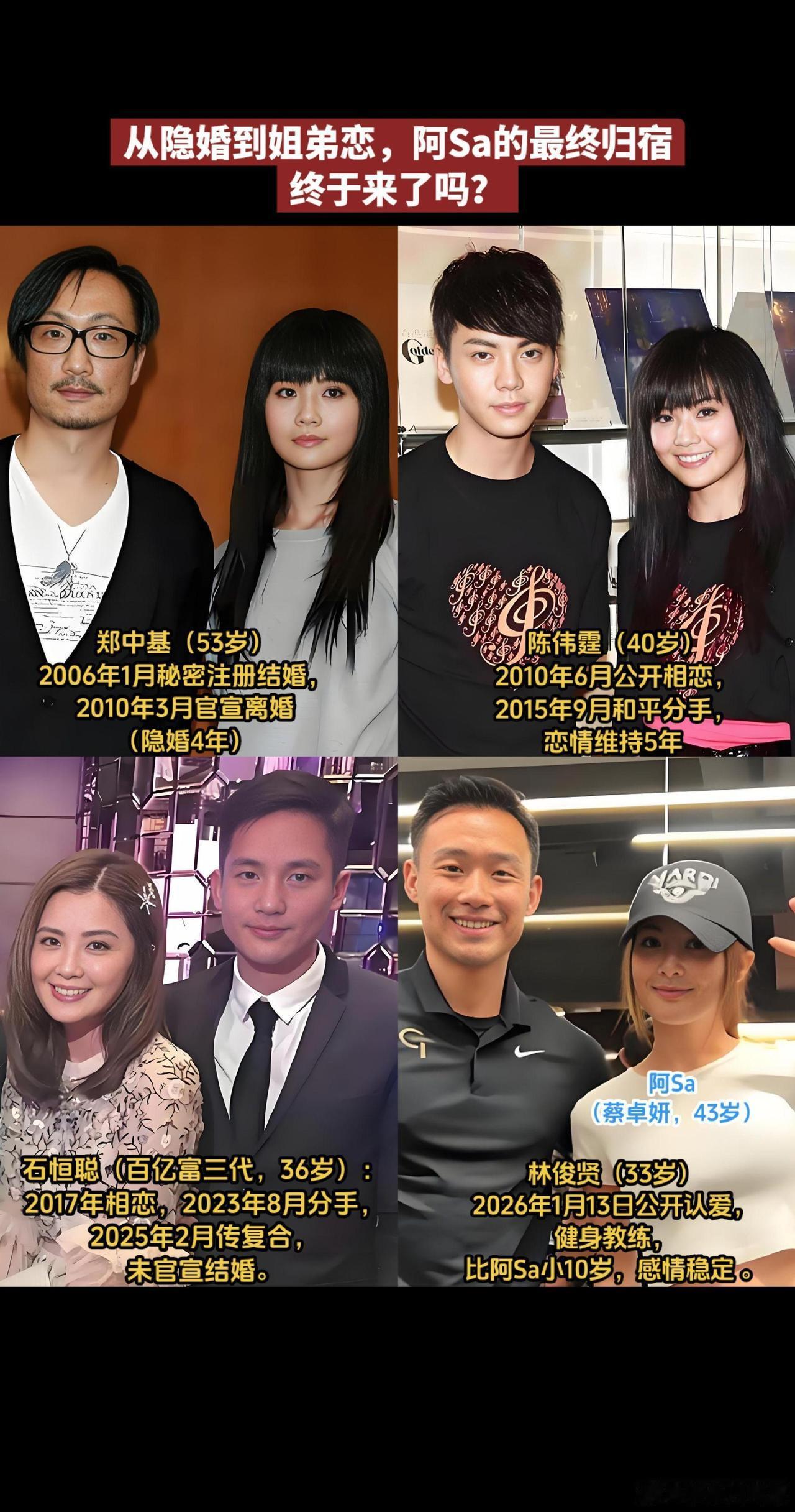 阿Sa蔡卓妍在感情上一直挺勇敢的,每次恋爱都是轰轰烈烈的。