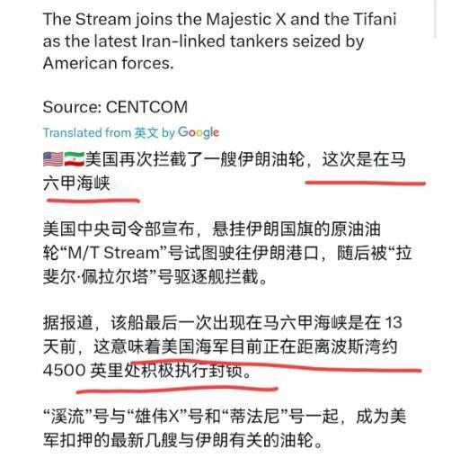 美国这个动作对我们也是极大的震慑!美国扣船都扣到马六甲海峡了!4月28日,根据外媒报道,外媒称,美国又扣押了一艘伊朗油轮,此次事发马六甲海峡。