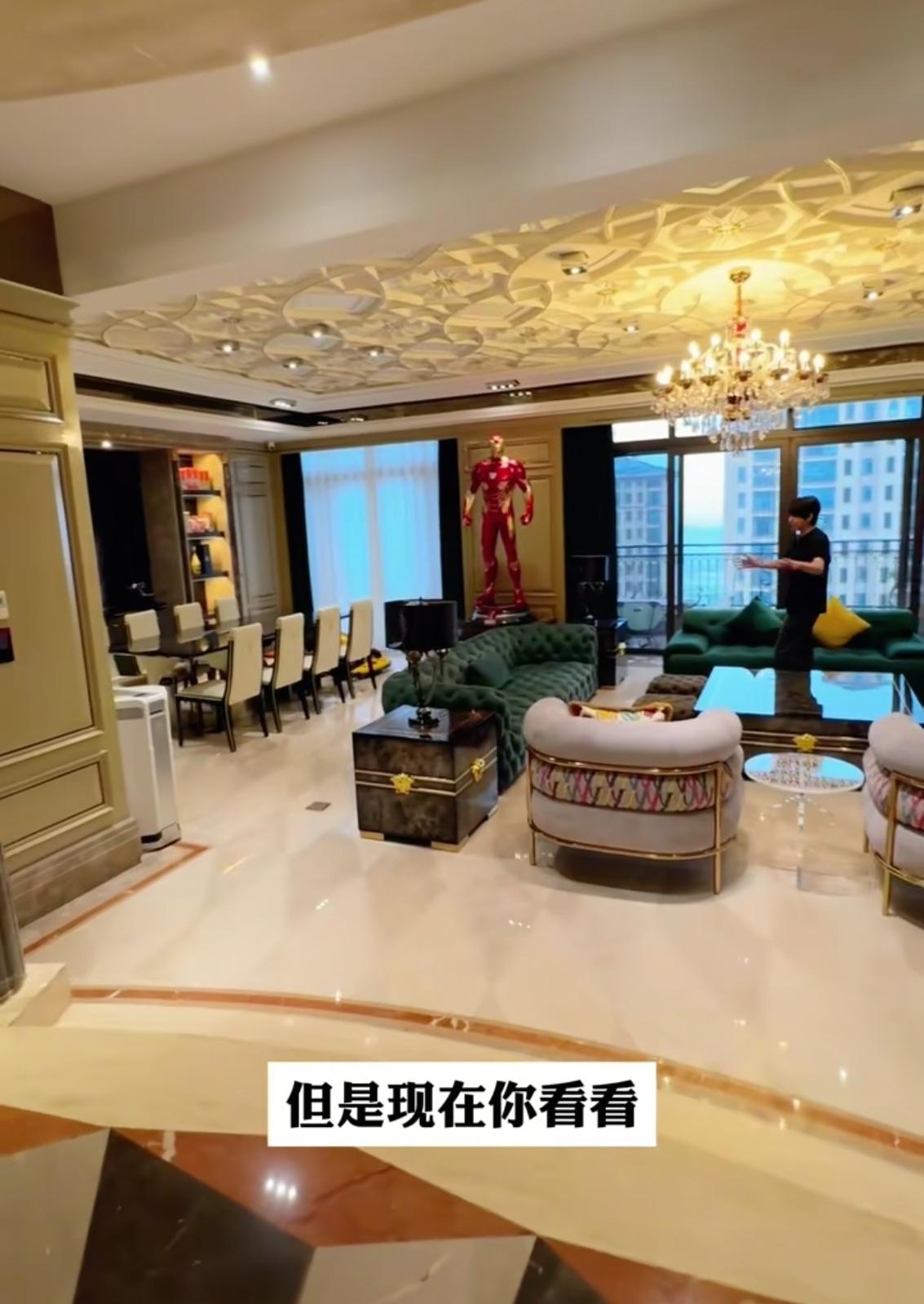 早前有房产中介晒出过这套房产的信息,房子位于上海知名高端楼盘星河湾,总面积达到500平米,室内软装基本全是高端定制款,推开门就能感受到扑面而来的华贵质感。