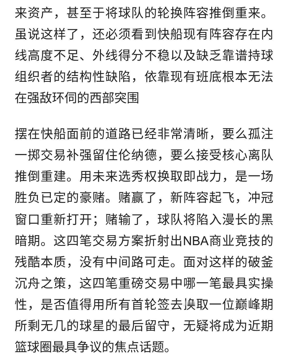 快船急疯了!4笔梭哈级交易曝光,半支轮换加7个首轮全砸。