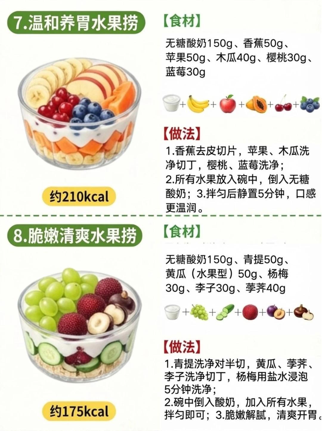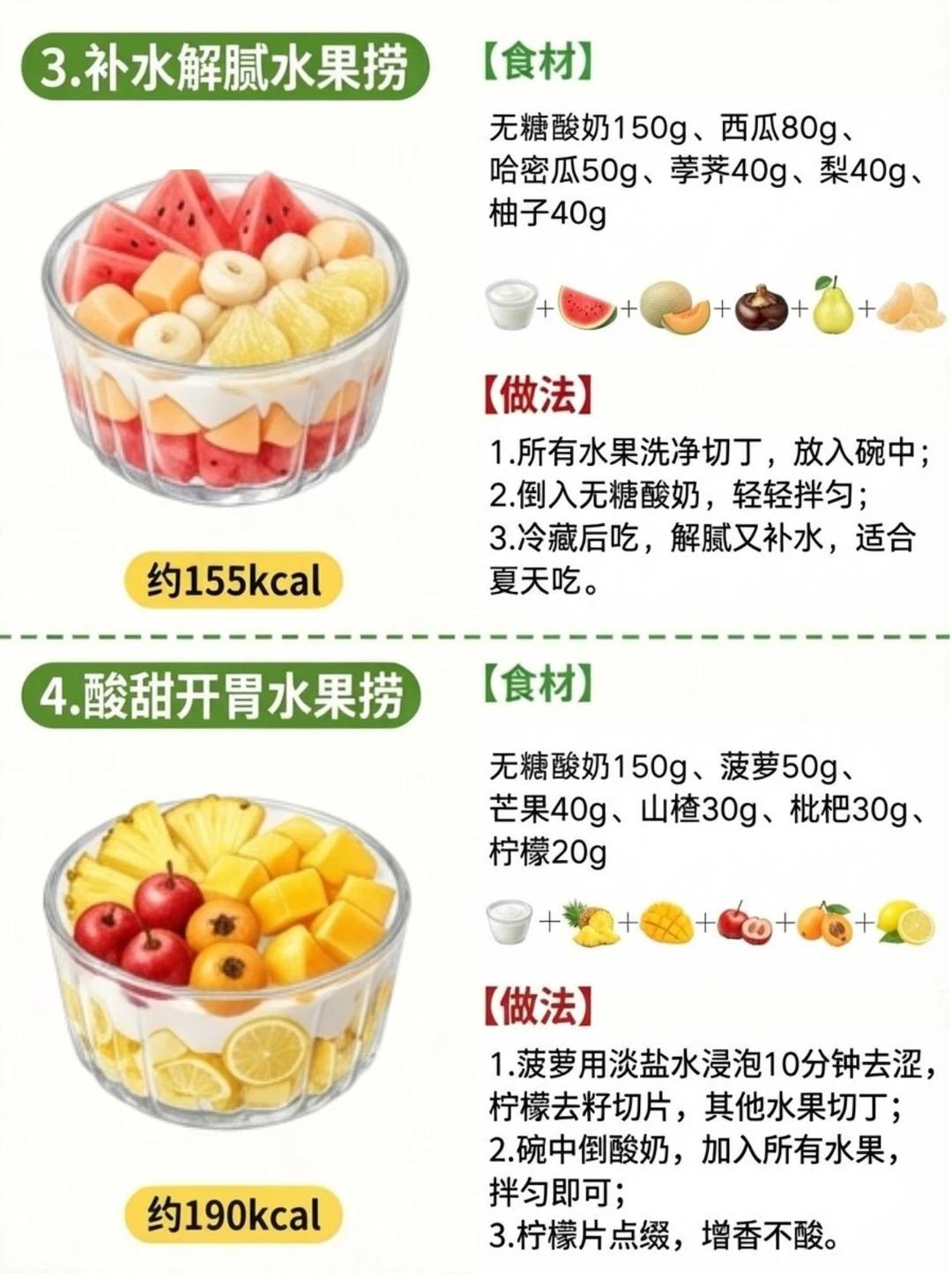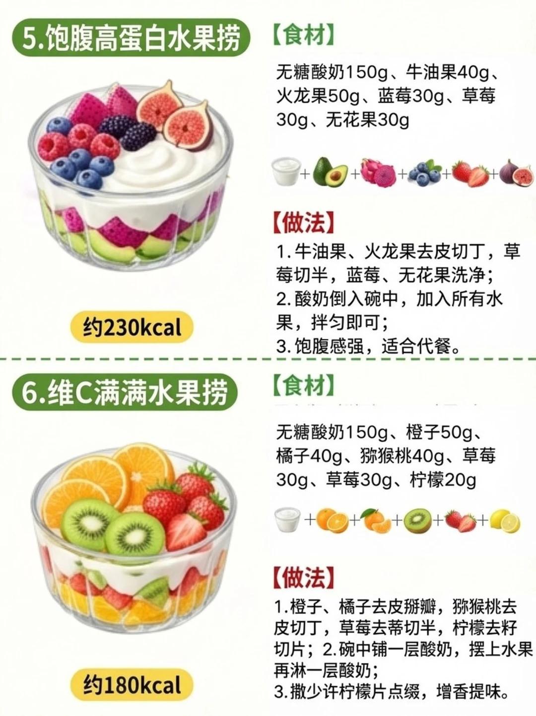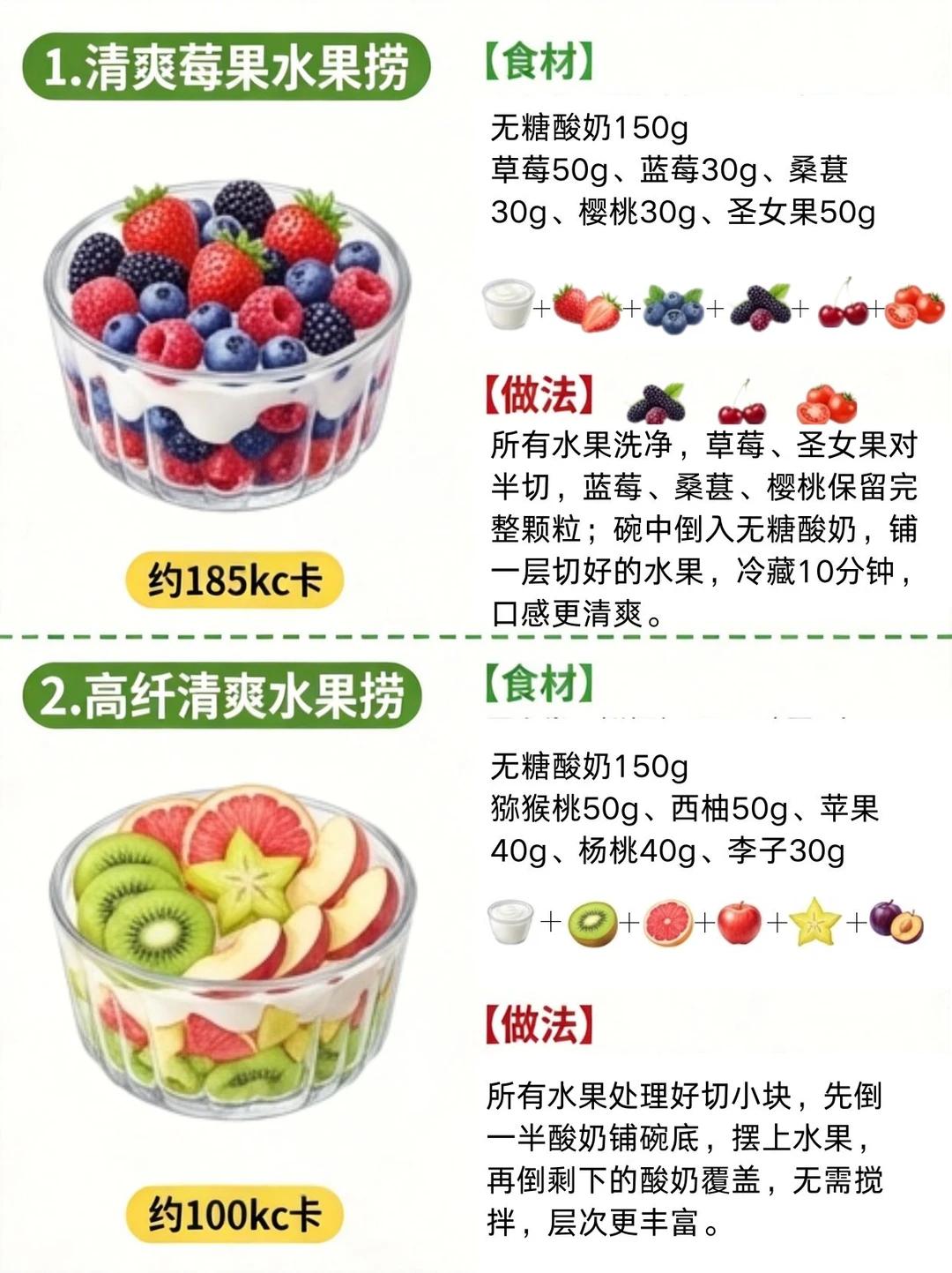 8 款减脂水果捞来袭!低卡饱腹,让你越吃越瘦! 优先挑选无糖酸奶,每 100g