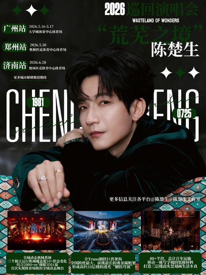 【南昌国体中心guan方发布】陈楚生荒芜之境巡演南昌站5万人共赴乐坛“四冠王”