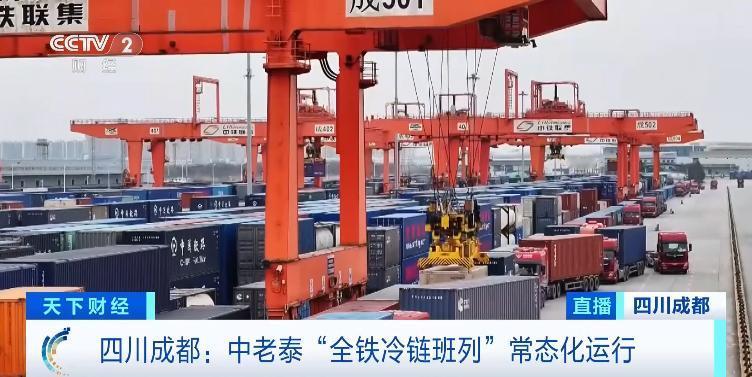 现在不一样了,中老泰直达的冷链火车开始天天跑了,说白了就是,榴莲从泰国树上摘下来,装到专用的冷藏箱子里,直接用火车运,中间不换车、不装卸,一箱直接到成都,运输时间从一周缩到了5天。