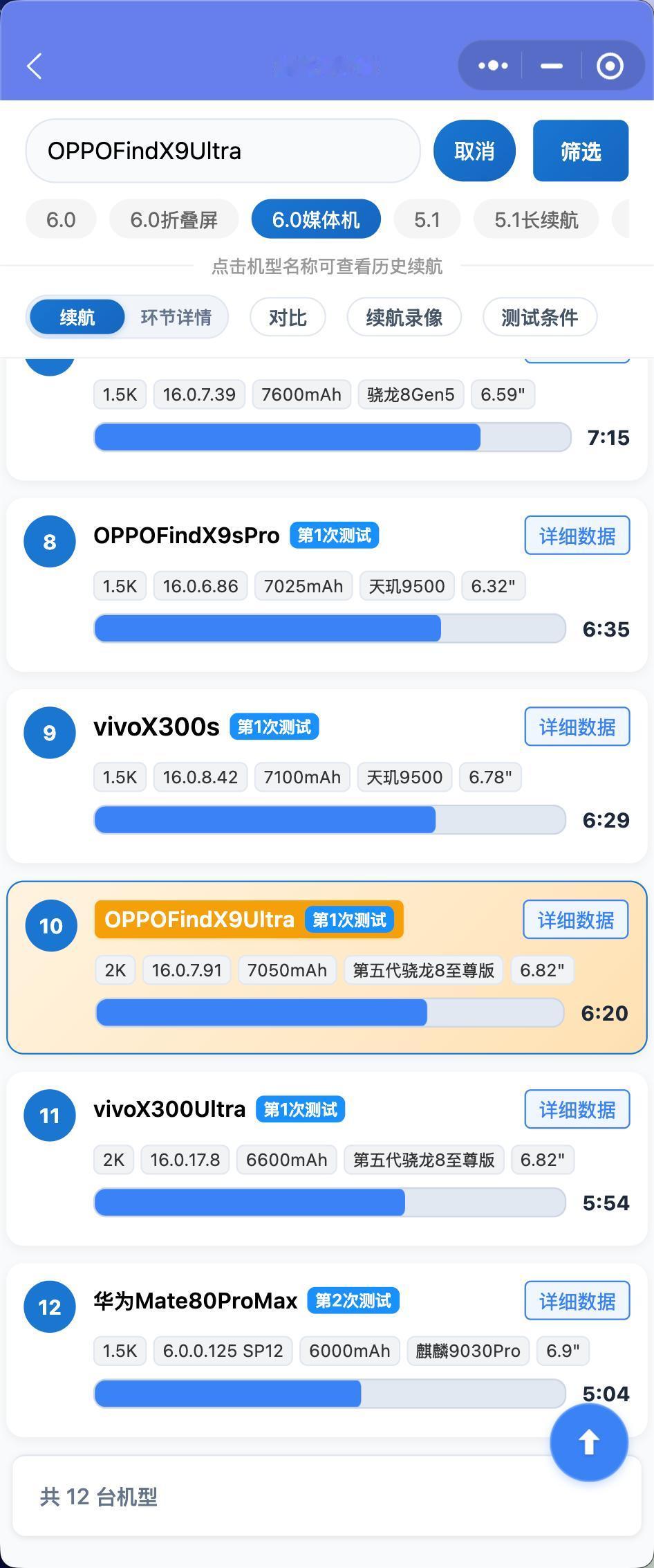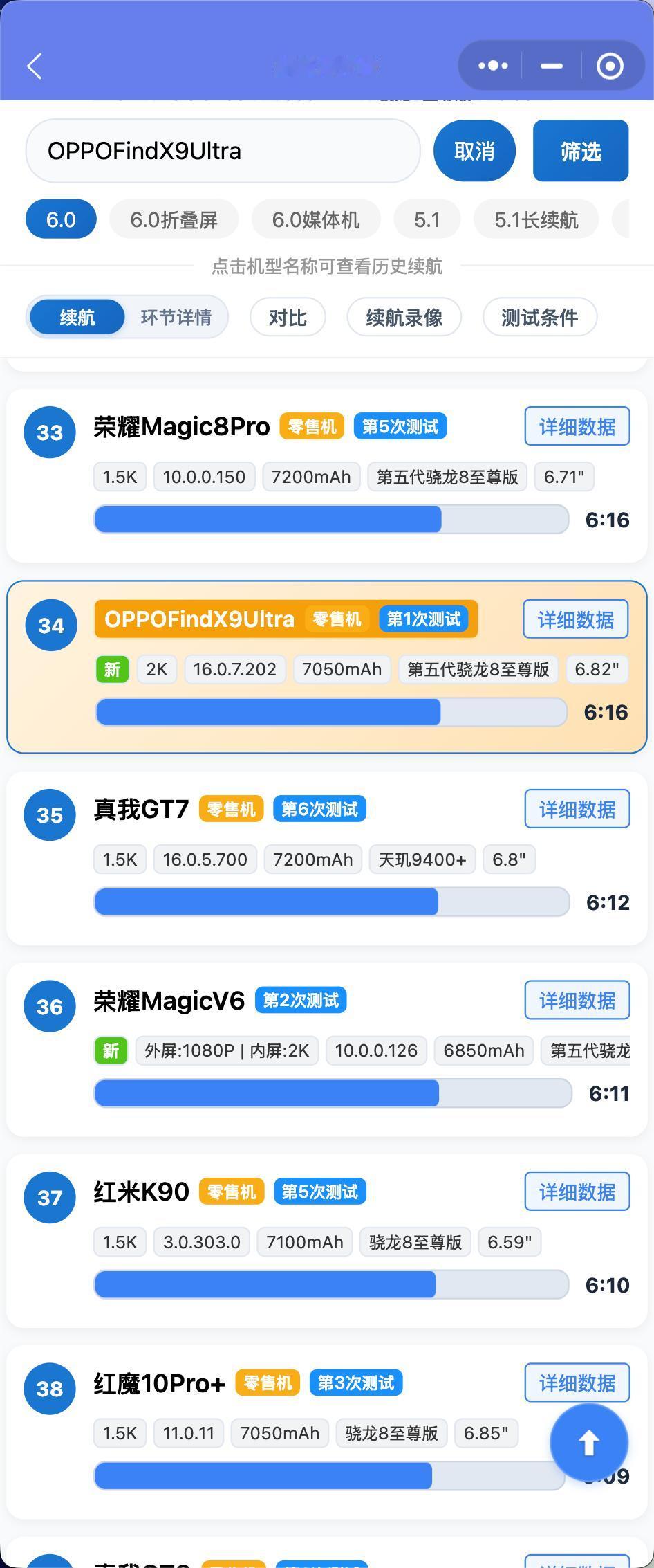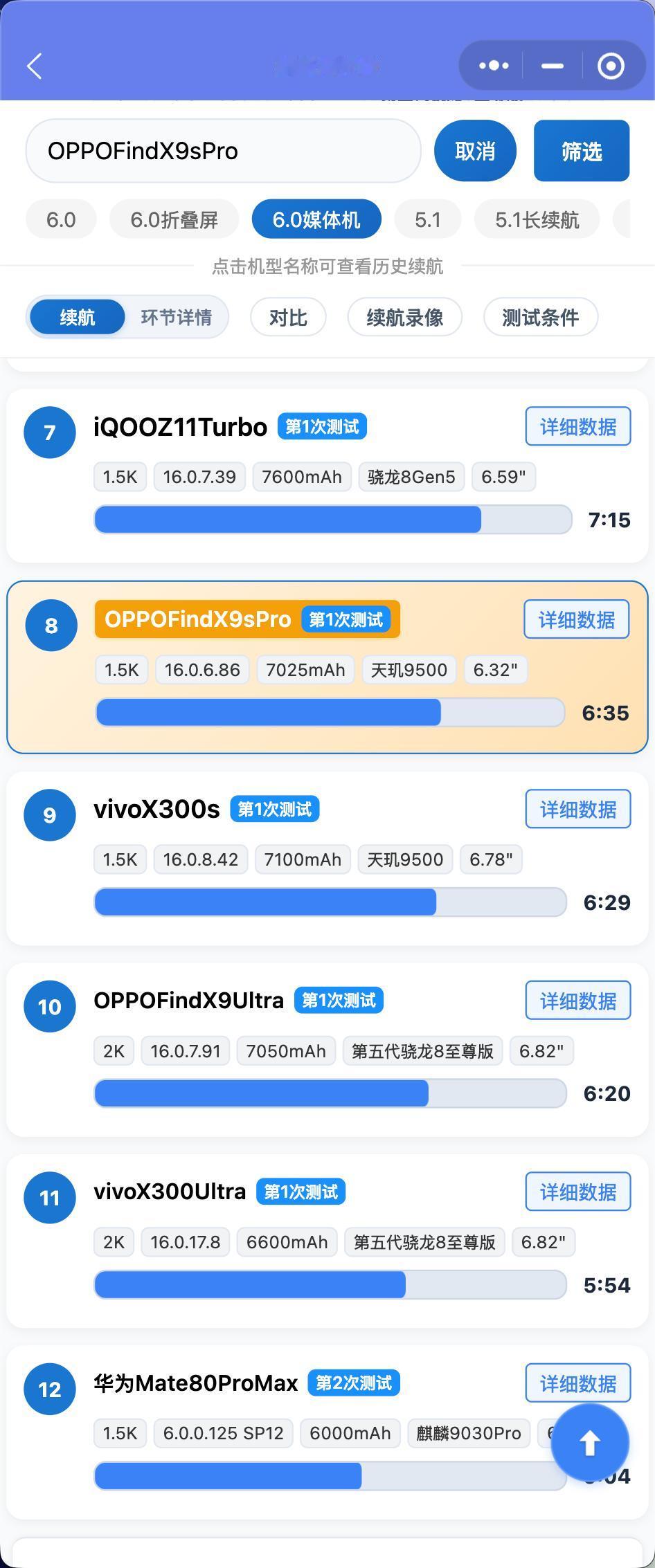 OPPOFindX9Ultra零售机和OPPOFindX9sPro零售机续航测试结果出来了: