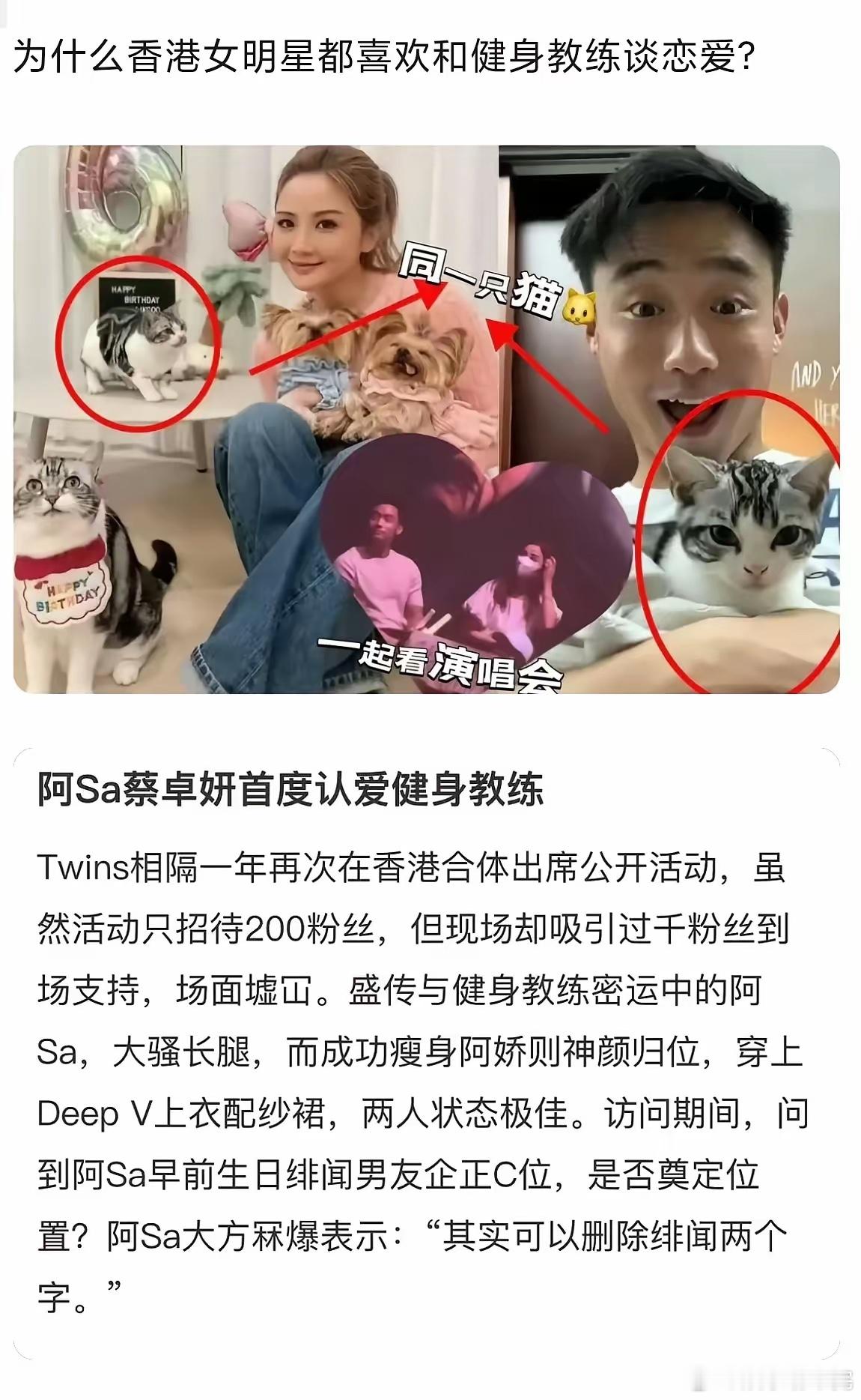 阿sa官宣结婚,男方是健身教练,其实sa的谈的每一任都没有相同点,少女时代喜欢幽默的大叔还大胆隐婚,后来伤心了之后喜欢公司年下陈伟霆,又谈了很多年算是在财富上势均力敌的富二代。最后居然和一个全方位都不如自己,但可能听话会照顾好人的健身教练在一起。活到阿sa这个年纪,找男人就找情绪价值的,身材好 ,也挺好的。