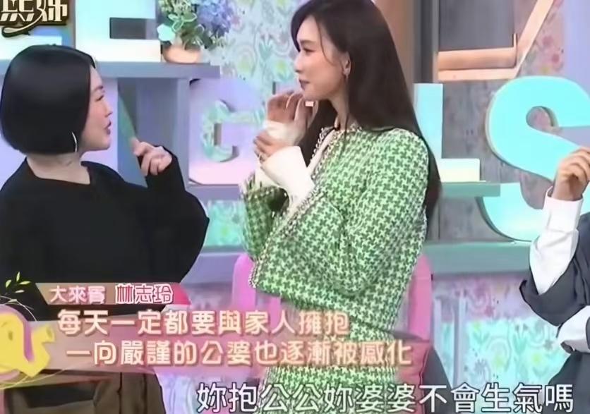 小S还问林志玲抱公公,婆婆会不会生气,林志玲说不会的,林志玲跟婆家的关系处的挺好的,一家人还会拥抱在一起。