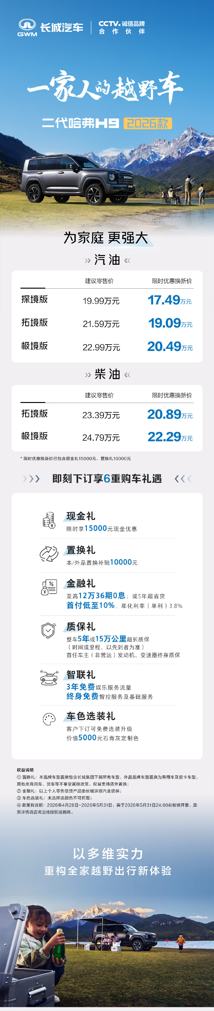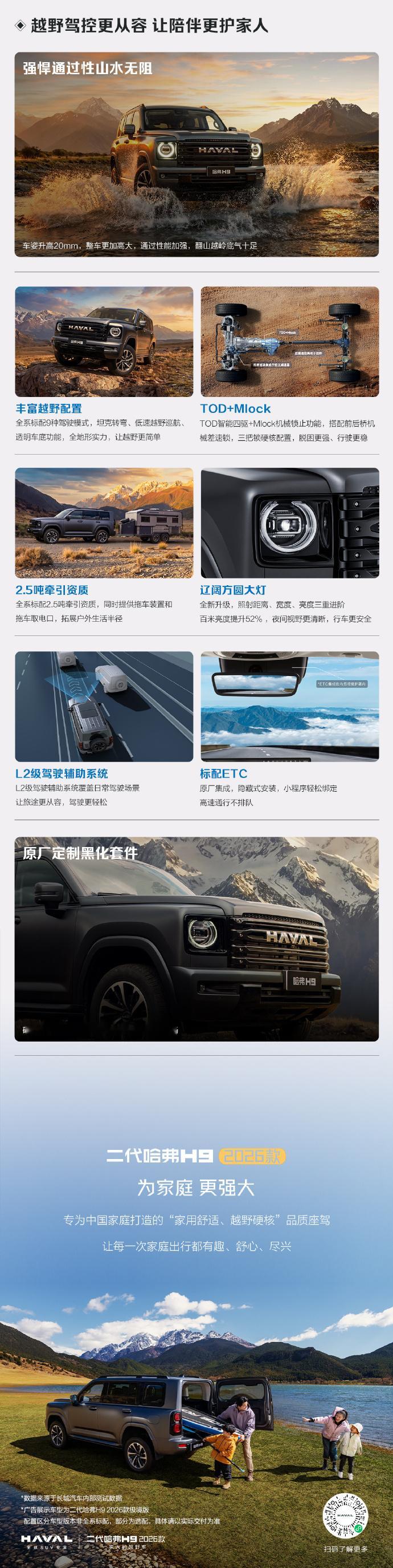 2026款二代哈弗H9 正式上市,限时优惠换新价17.49万元起,底盘升高20mm并标配黑化套件。