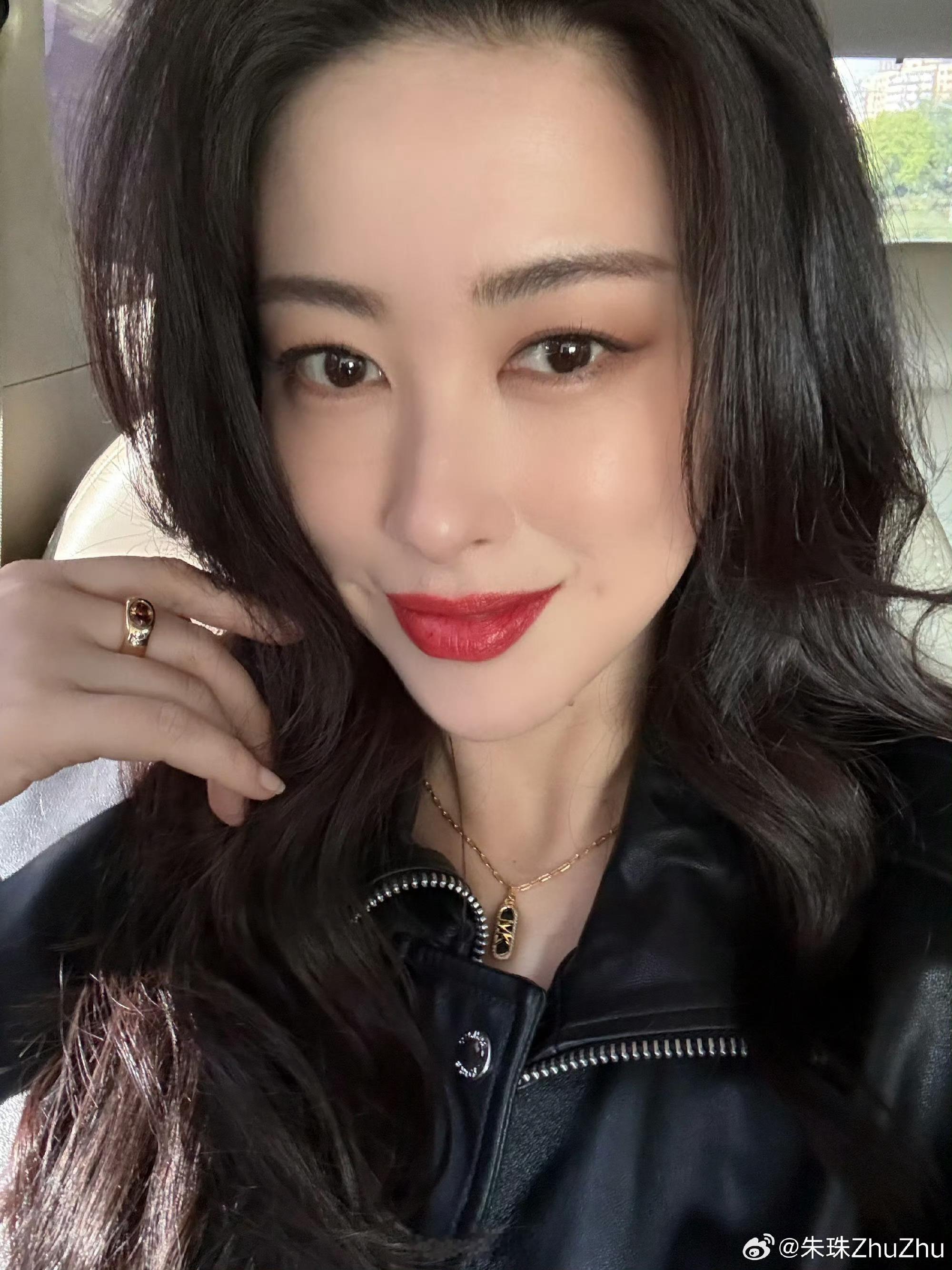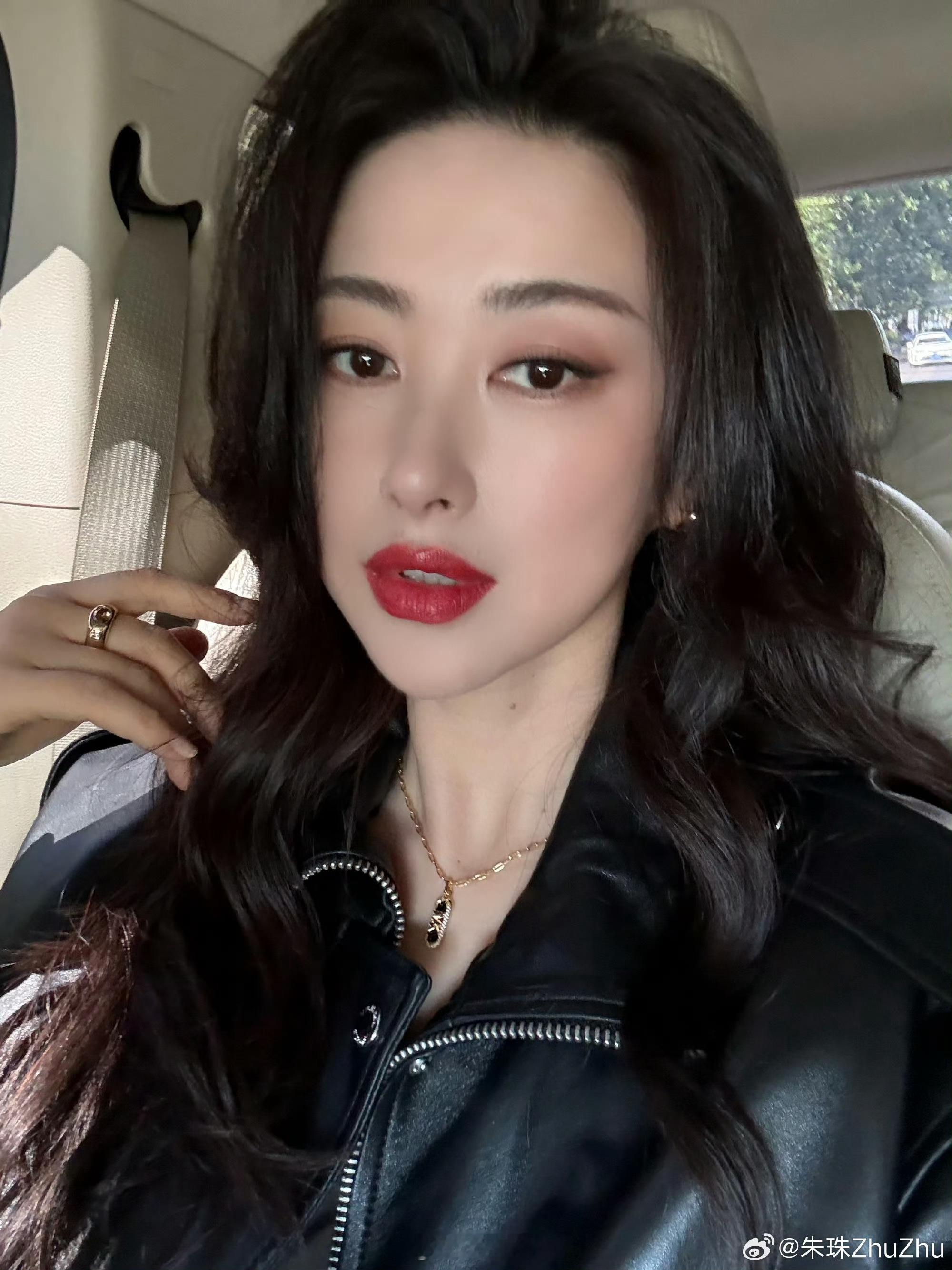 朱珠蜜语红唇妆好美!