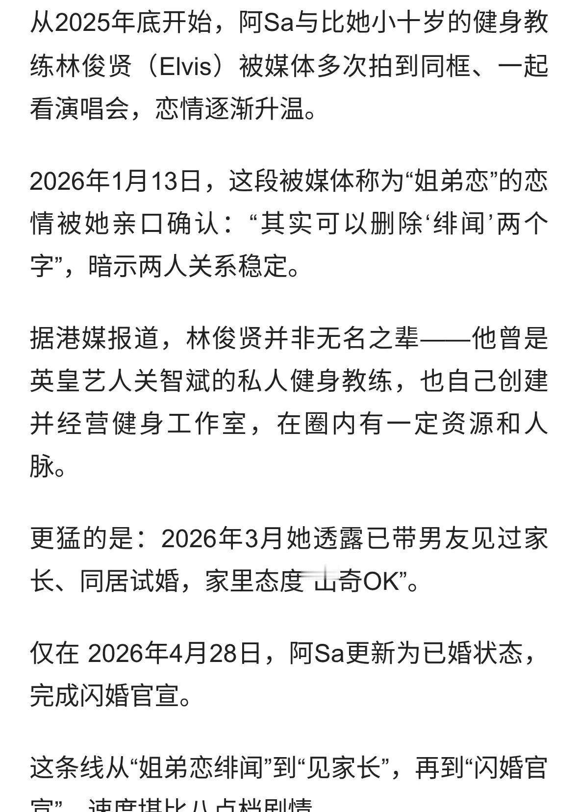 完全没想到twin组合的蔡卓妍阿sa能和小10岁的健身教练结婚。祝福他们。