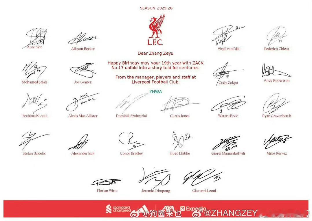张泽禹连续两年收到利物浦的生日祝福 利物浦连他的生日都记住了,一连两年。泰站这跨
