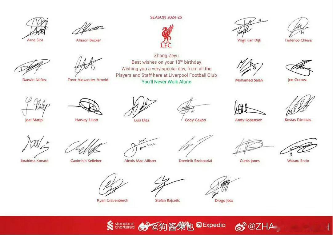 张泽禹连续两年收到利物浦的生日祝福 利物浦连他的生日都记住了,一连两年。泰站这跨国应援,把追星搞成了外交工程。