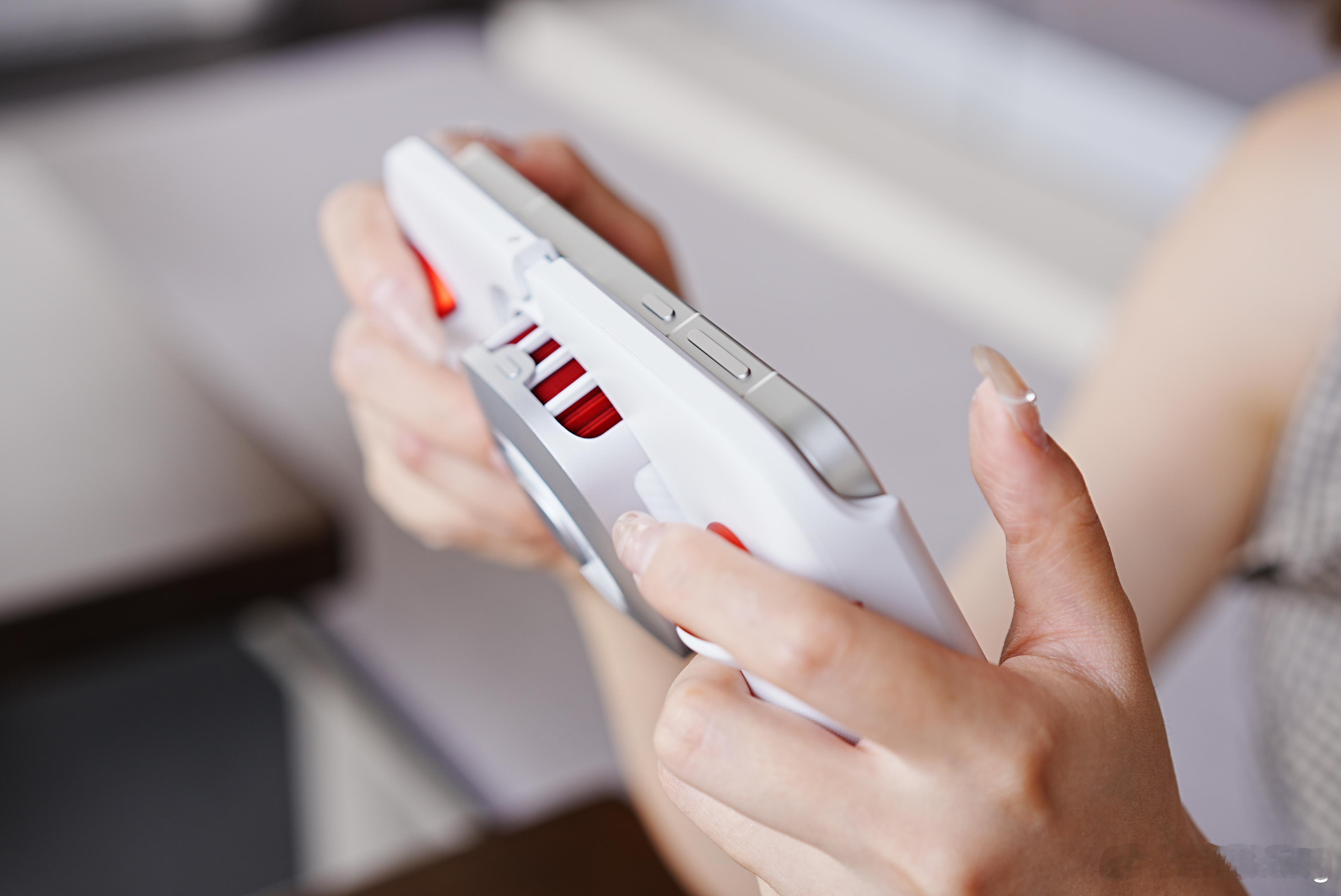 一加ACE6至尊版的枪神手柄真的绝了!手感超舒服,人体工学设计贴合掌心。四个按键位置刚刚好,手指放上去就适配,按感清脆回弹快。