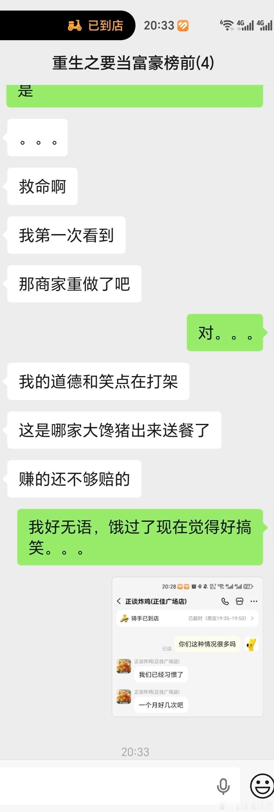 炸鸡很香,被骑手自己吃了|||如图,我又饿又觉得好好笑。。。炸鸡