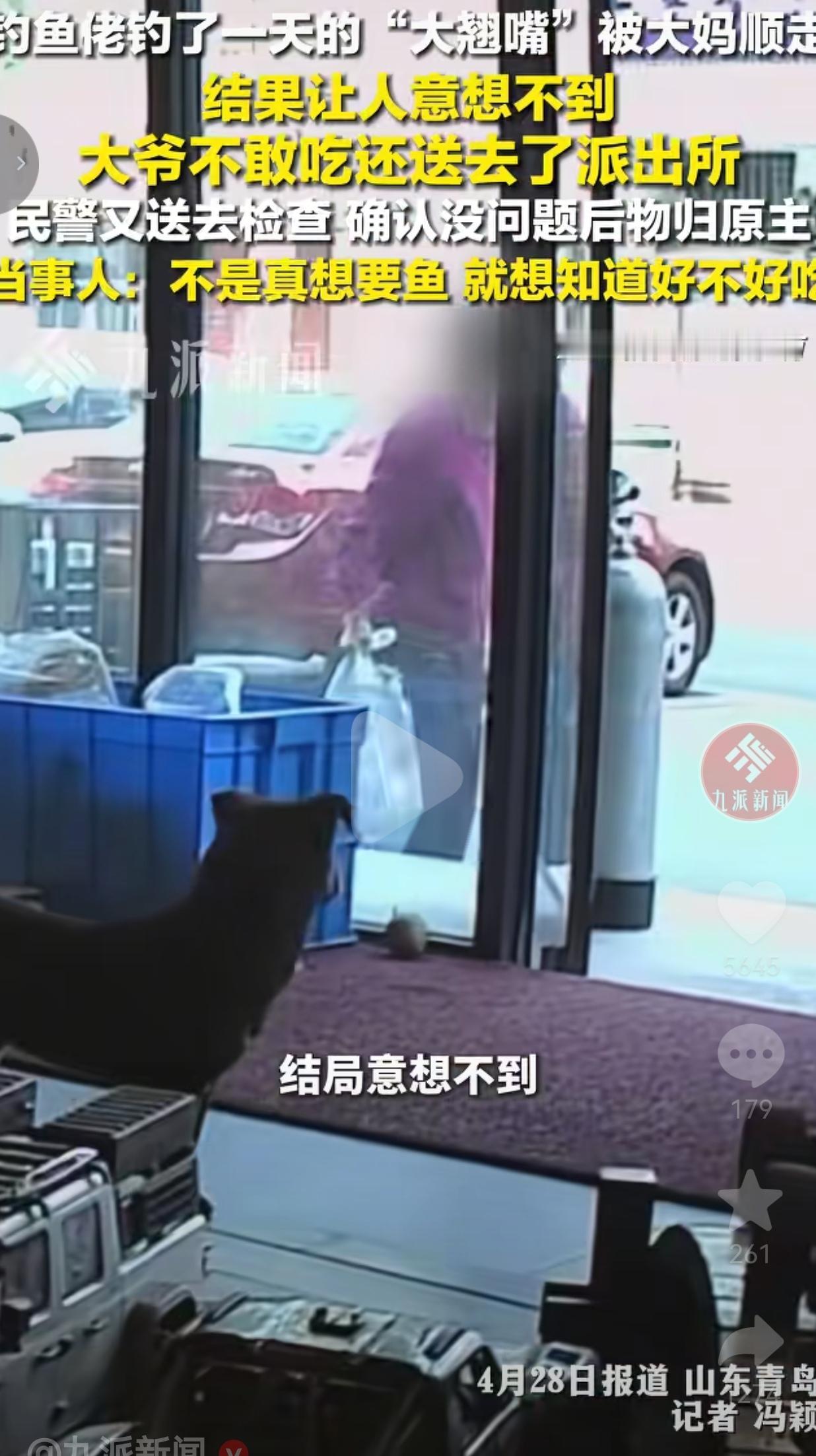 调监控一看,一位路过的大妈顺手拎走了。于先生急得不行,托朋友打听,最后终于找到了这位大妈。结果大妈的老伴,一个大爷,把鱼给送到派出所去了。