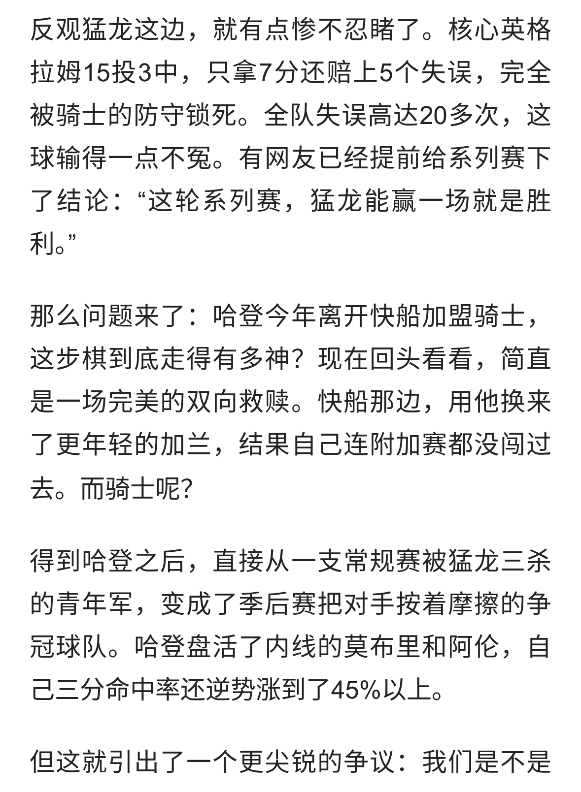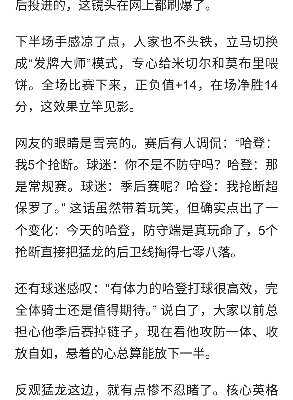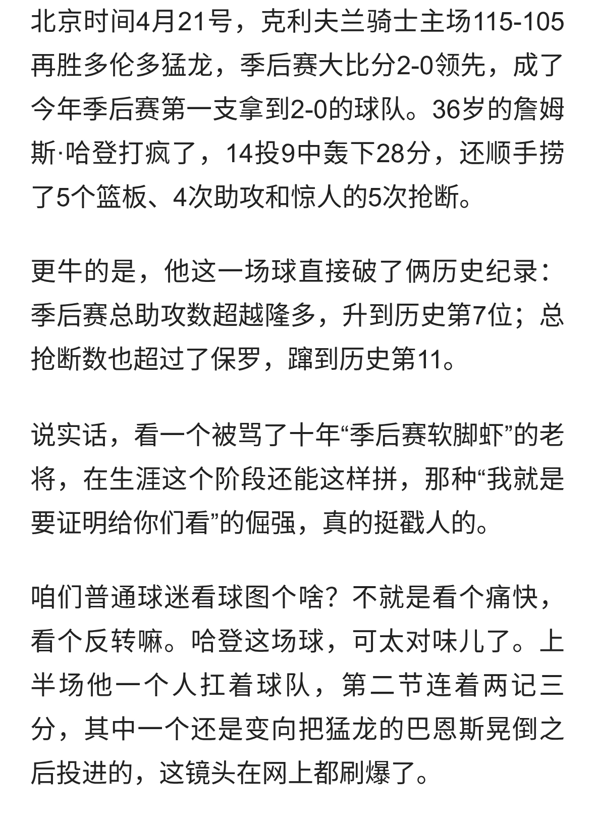 骑士2-0猛龙,哈登一战封神!最让人破防的是那个等了十年的眼神