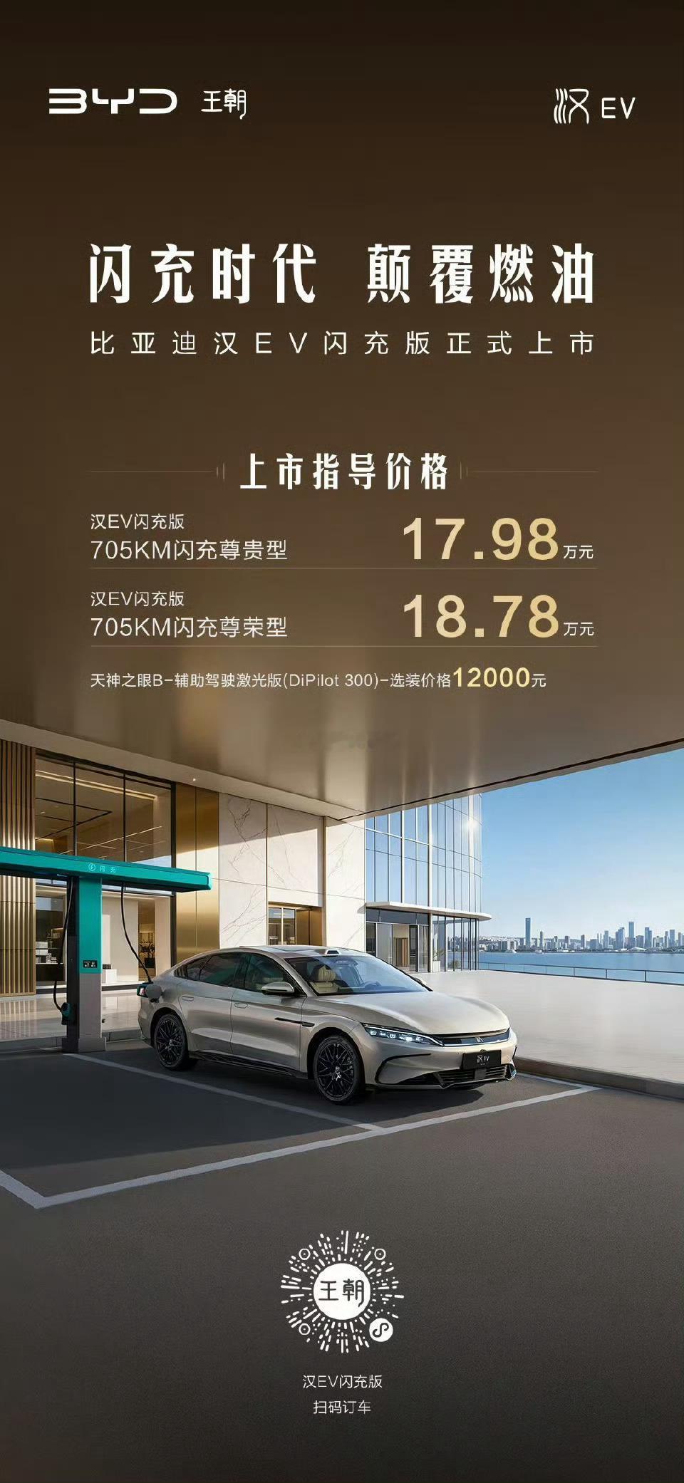 比亚迪汉EV闪充版上市了!两款车型售价分别为17.98万和18.78万元。搭载全
