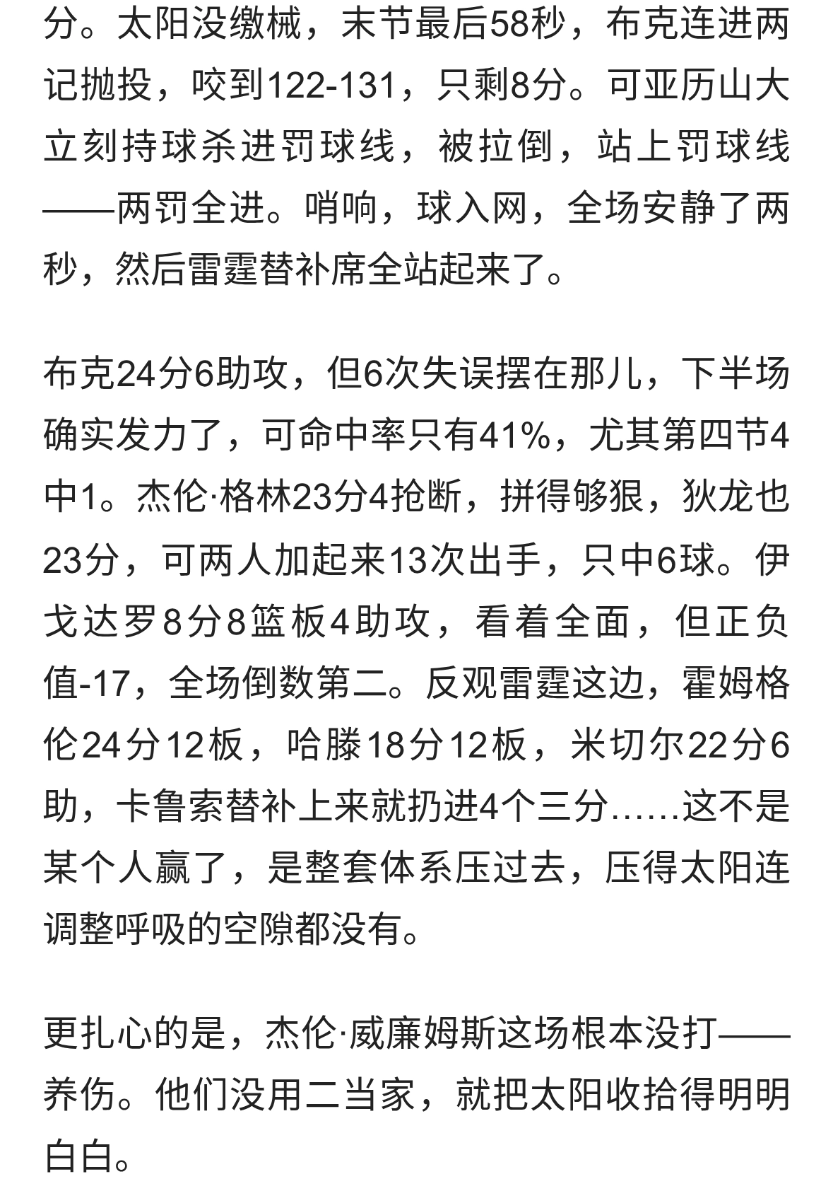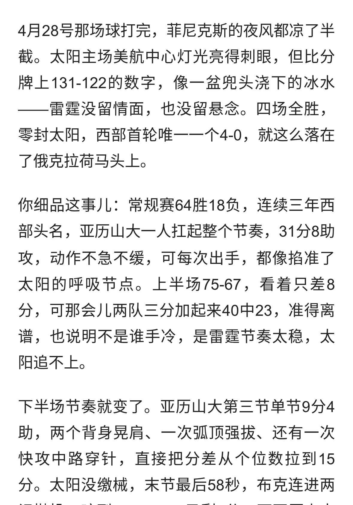 雷霆4-0横扫太阳!亚历山大31分收网,西部已无人能喘口气