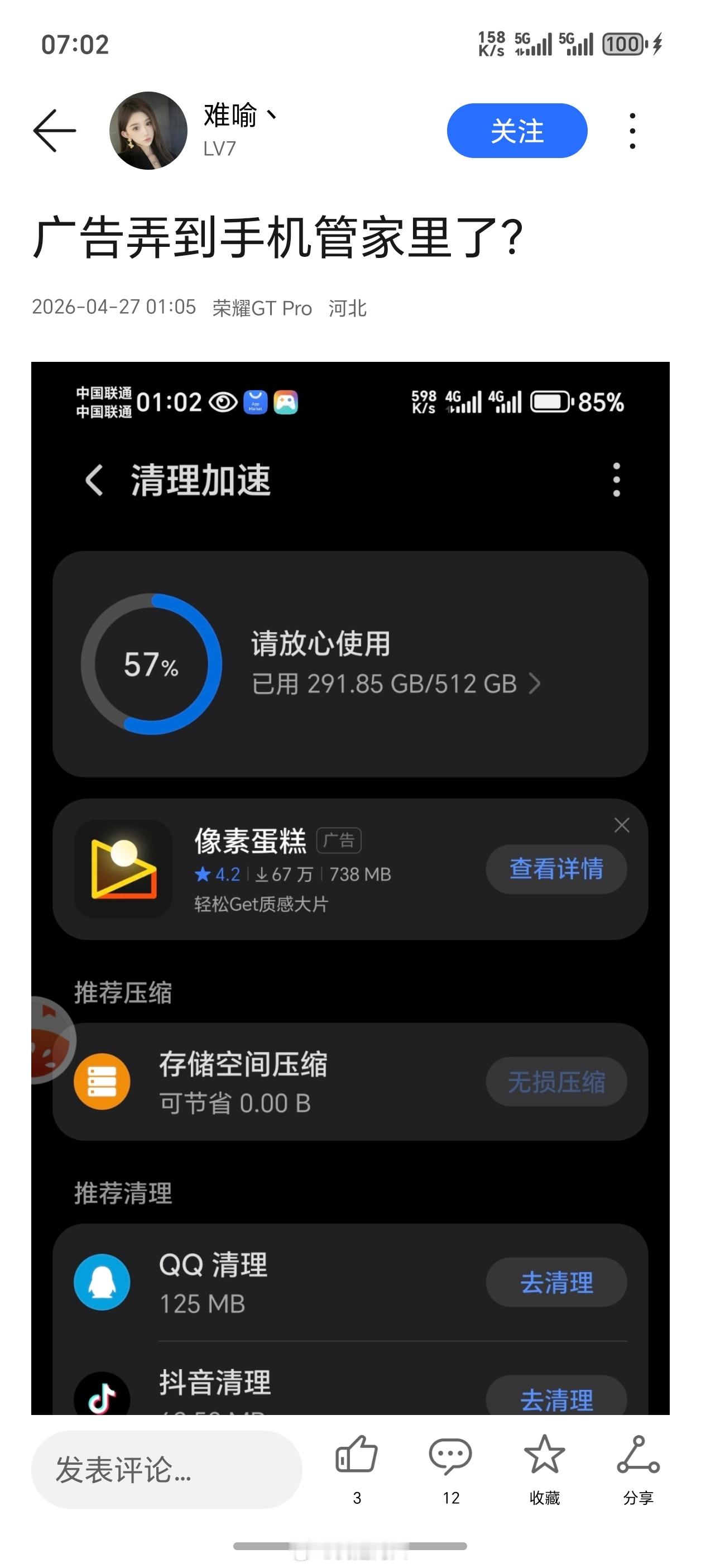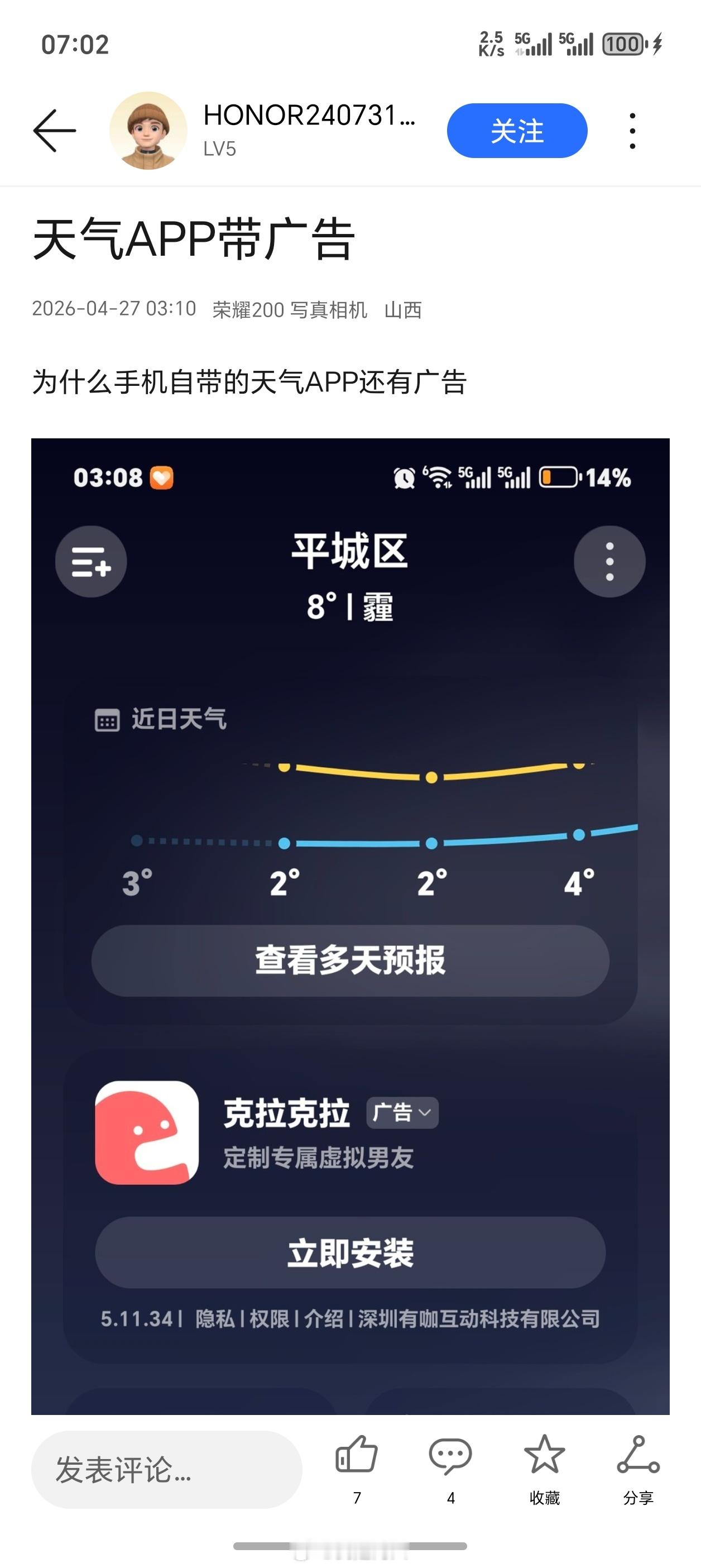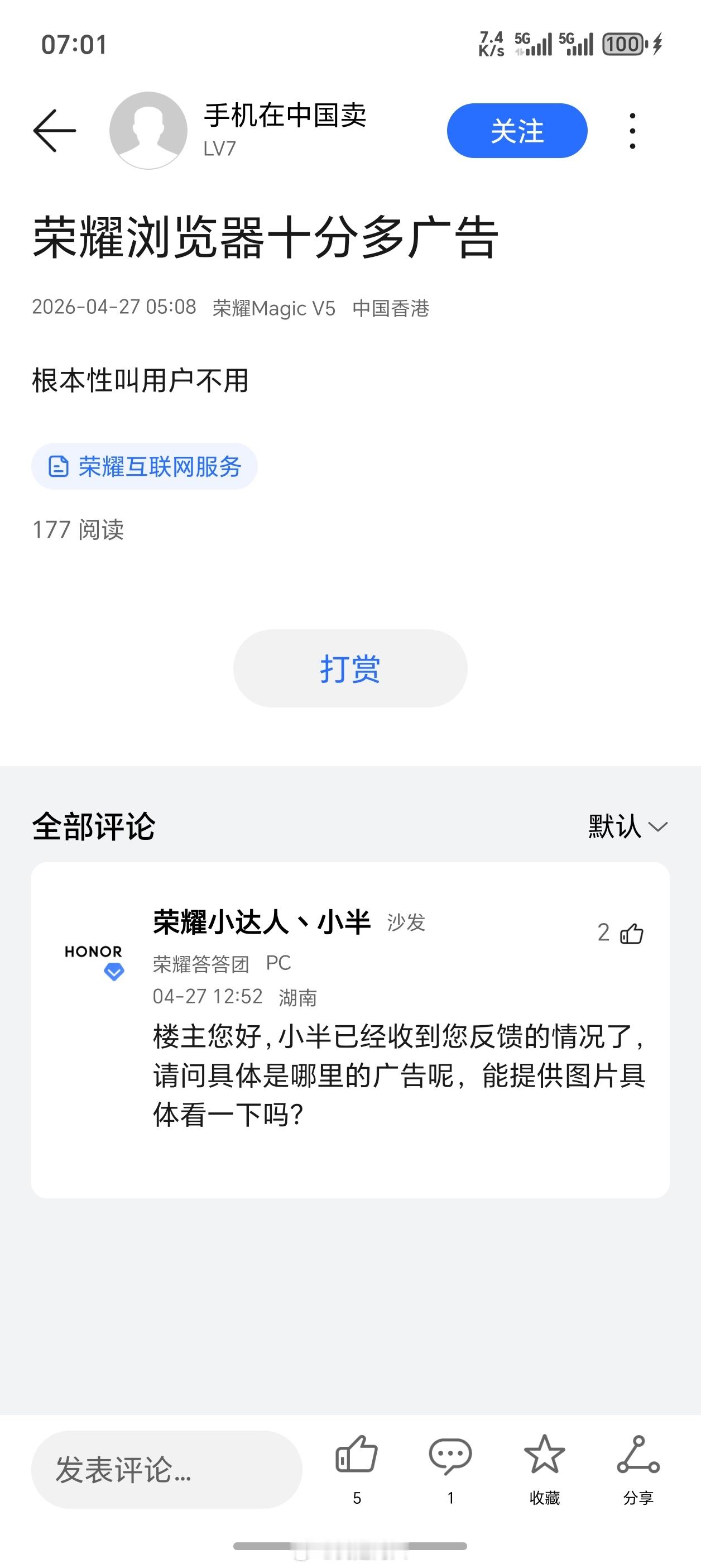 我看了一下荣耀官方俱乐部的用户反馈,而且都是最近发的,最近荣耀在手机系统里面疯狂加广告啊,有的广告加的都非常离谱。