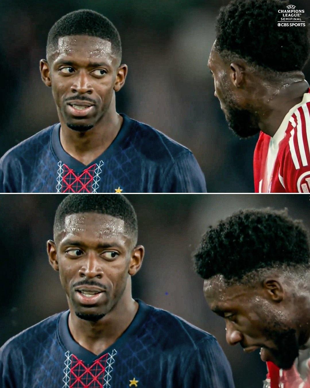 登贝莱并不接受戴维斯关于那不是手球的解释。登贝莱梅开二度欧冠