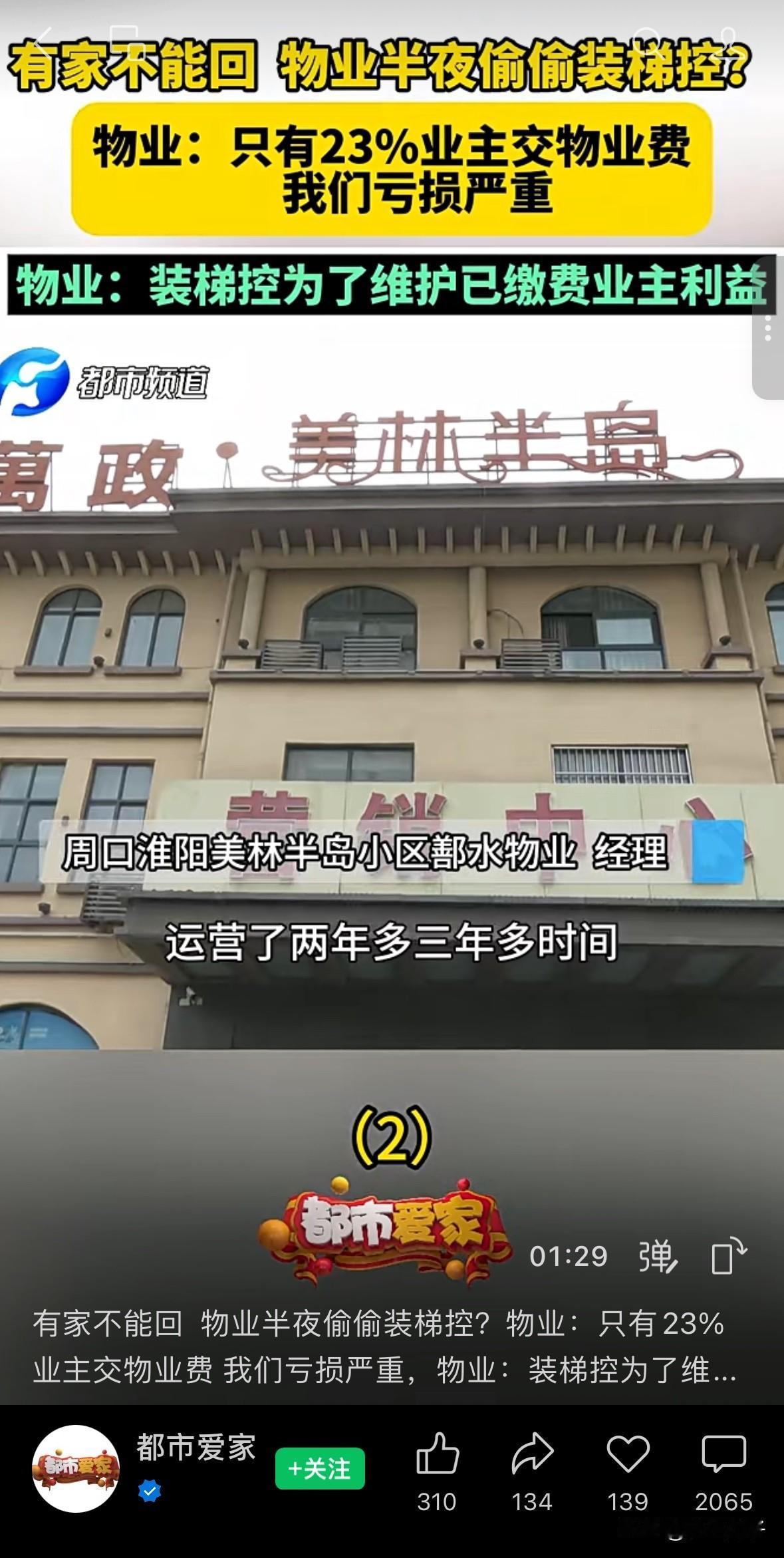 另外物业经理还解释安装梯控是为了维护已交物业费的业主权益,这种逻辑就更加值得斟酌了:明明是电梯这种小区业主共有设施,当成自己要挟收费的工具了,还要绑架已缴费的业主来搞针对,这是要发动群众斗群众吗?